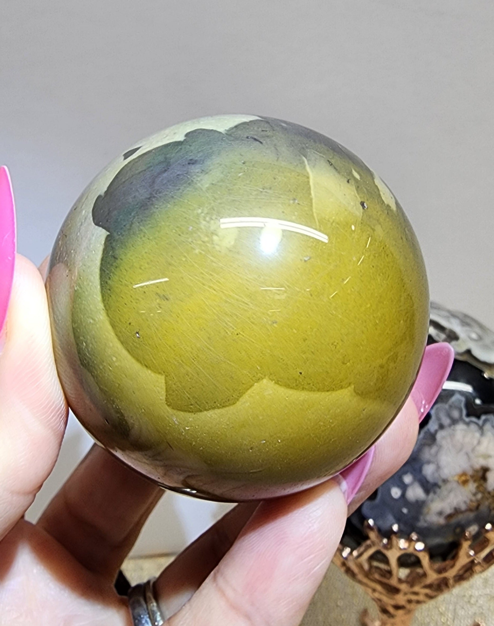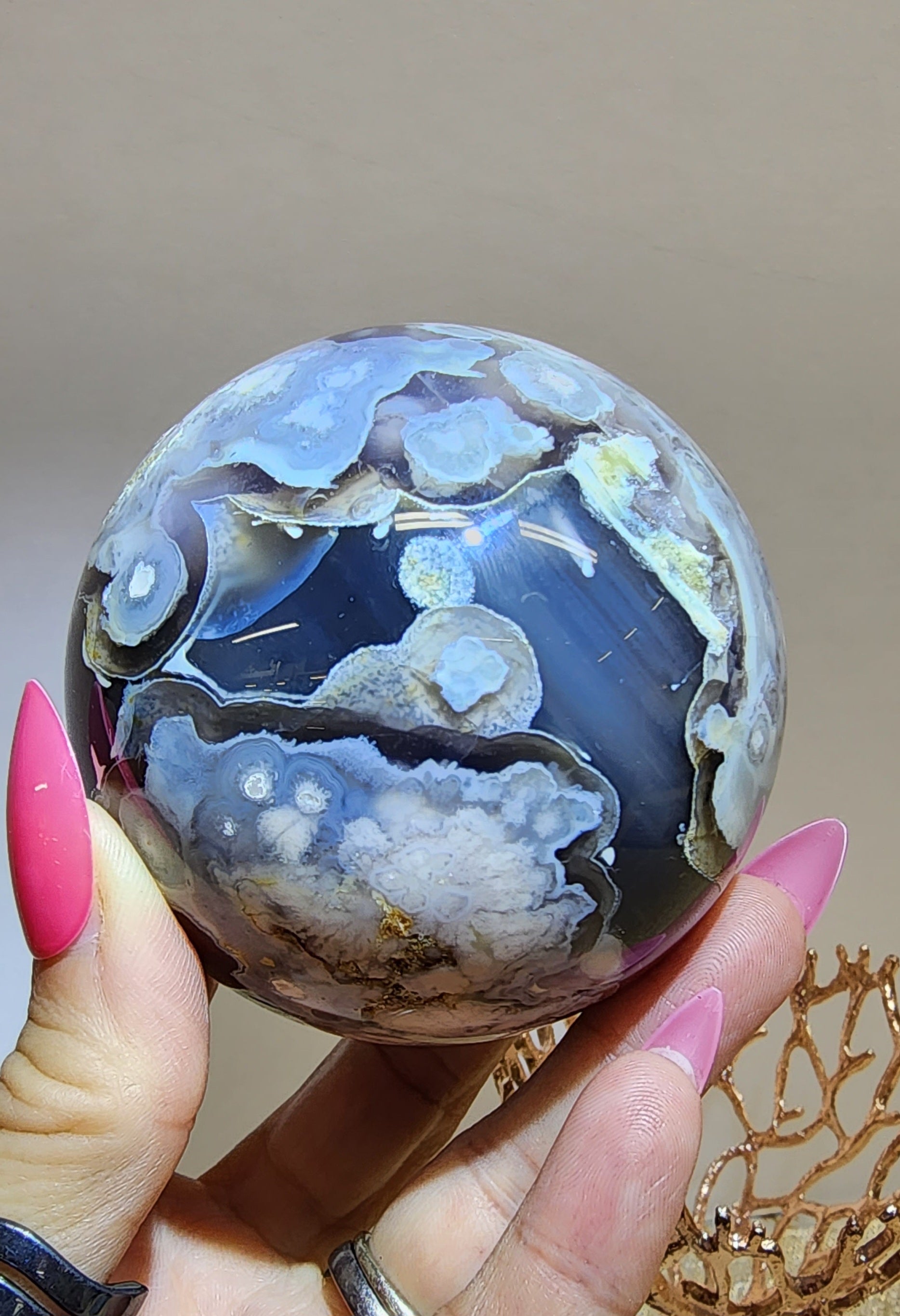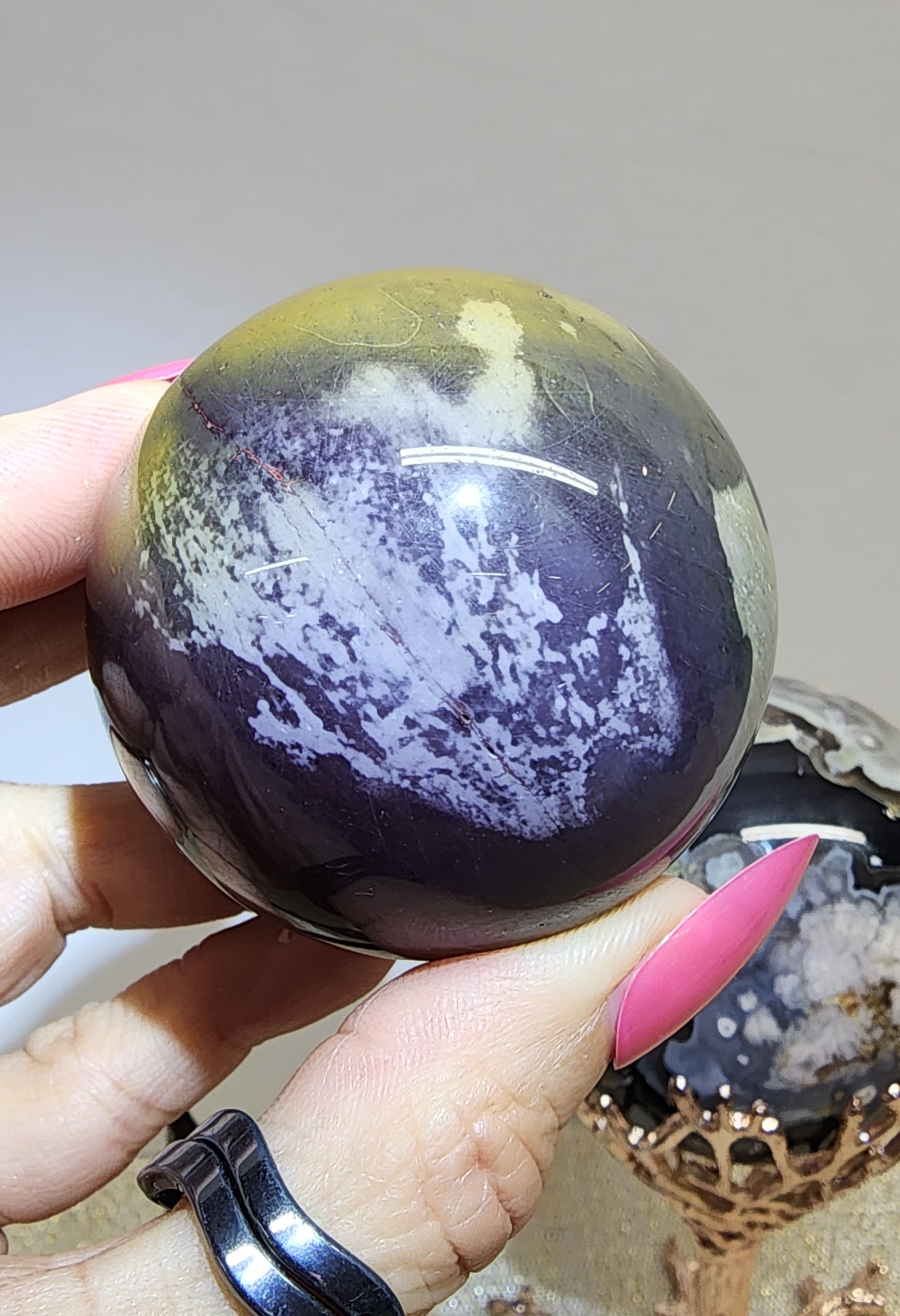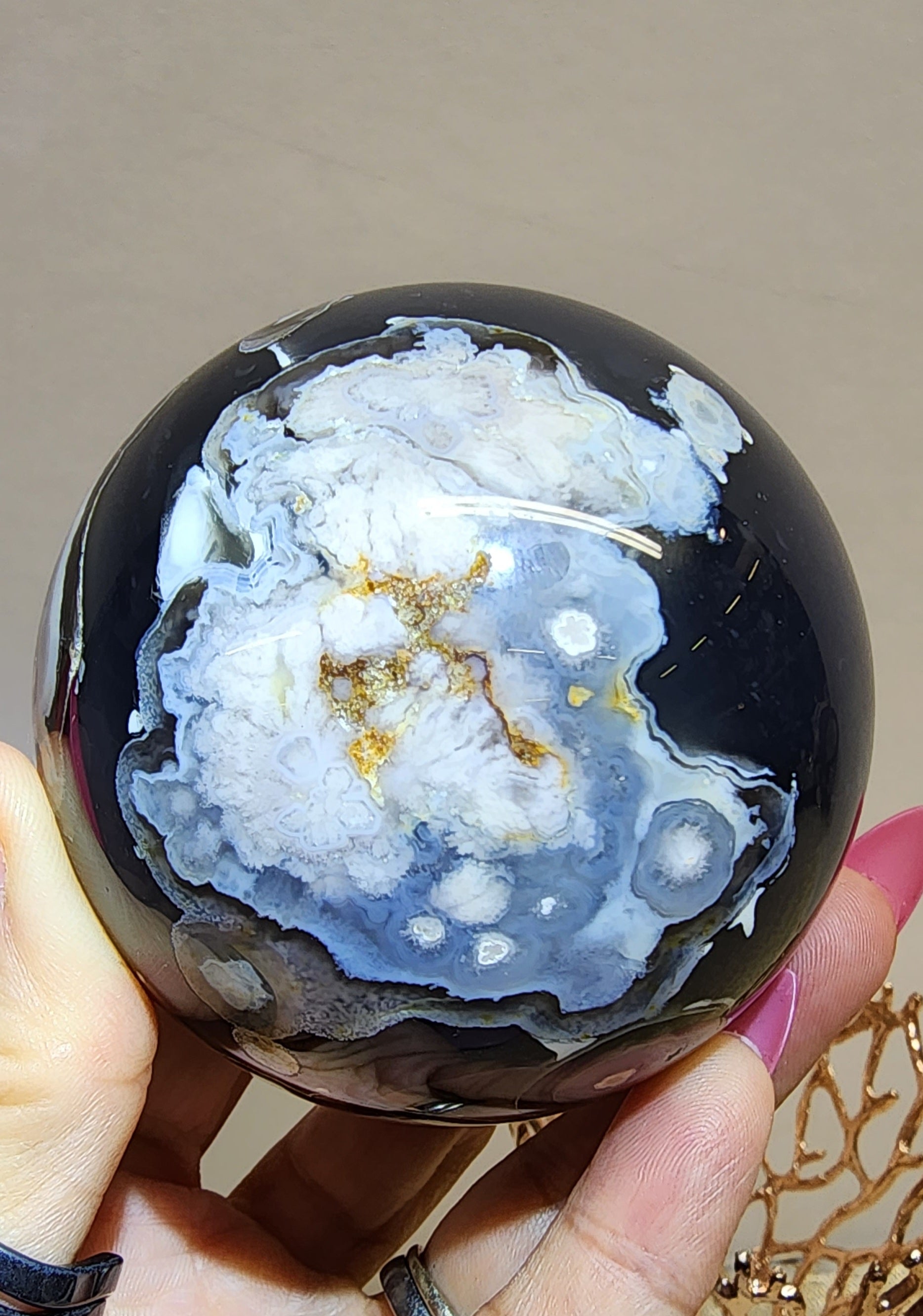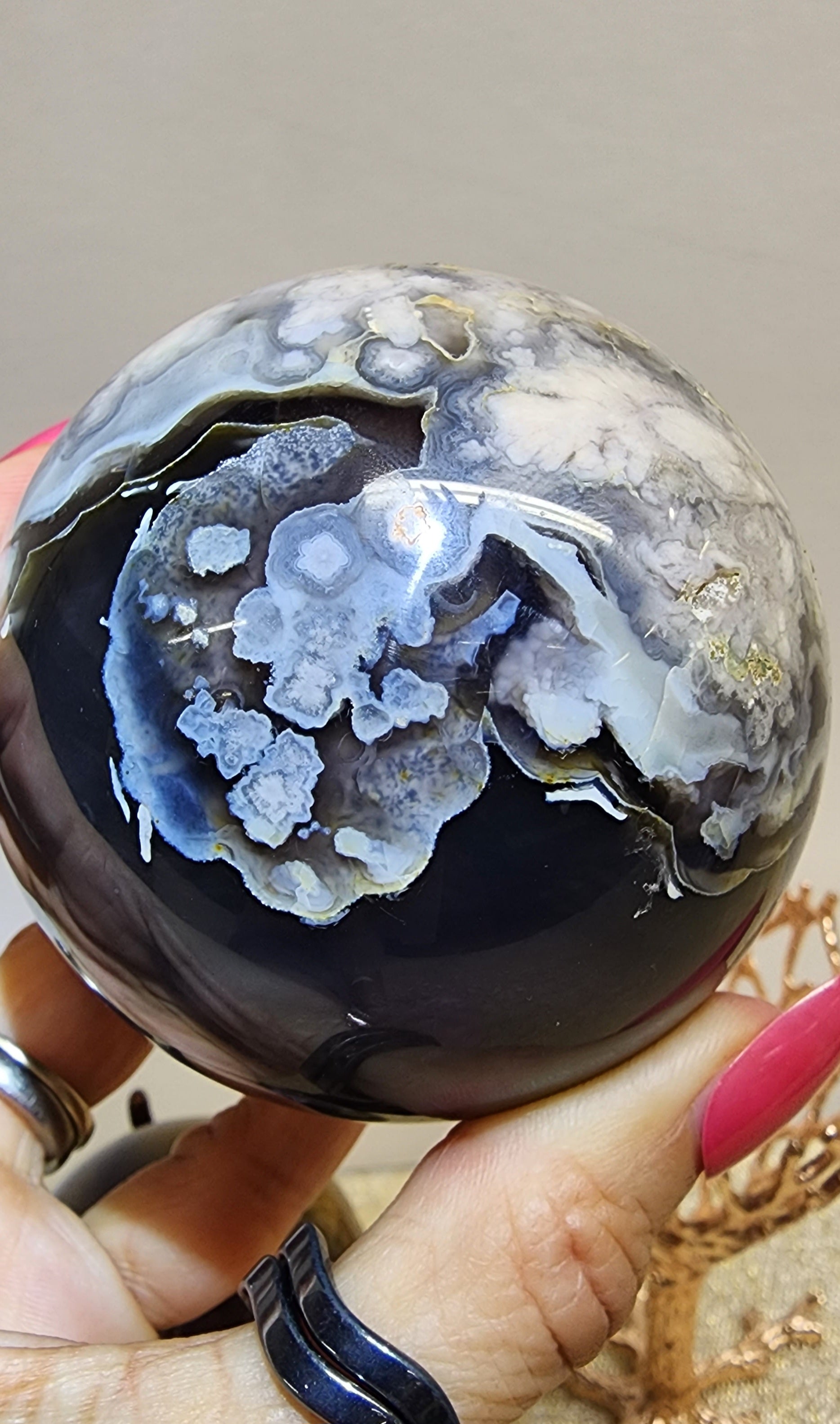 1 Large Black Flower Agate Sphere $150