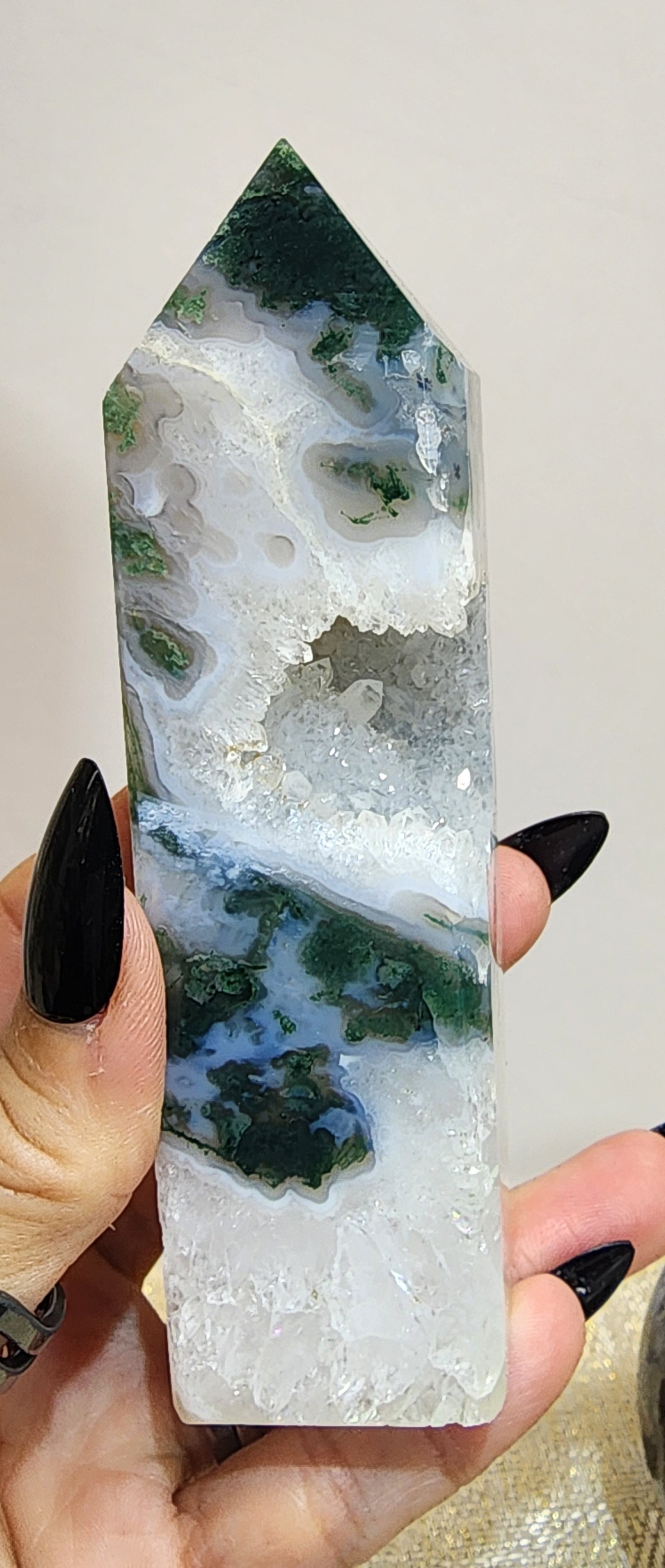 1 Druzy Portal Moss Agate Tower $82