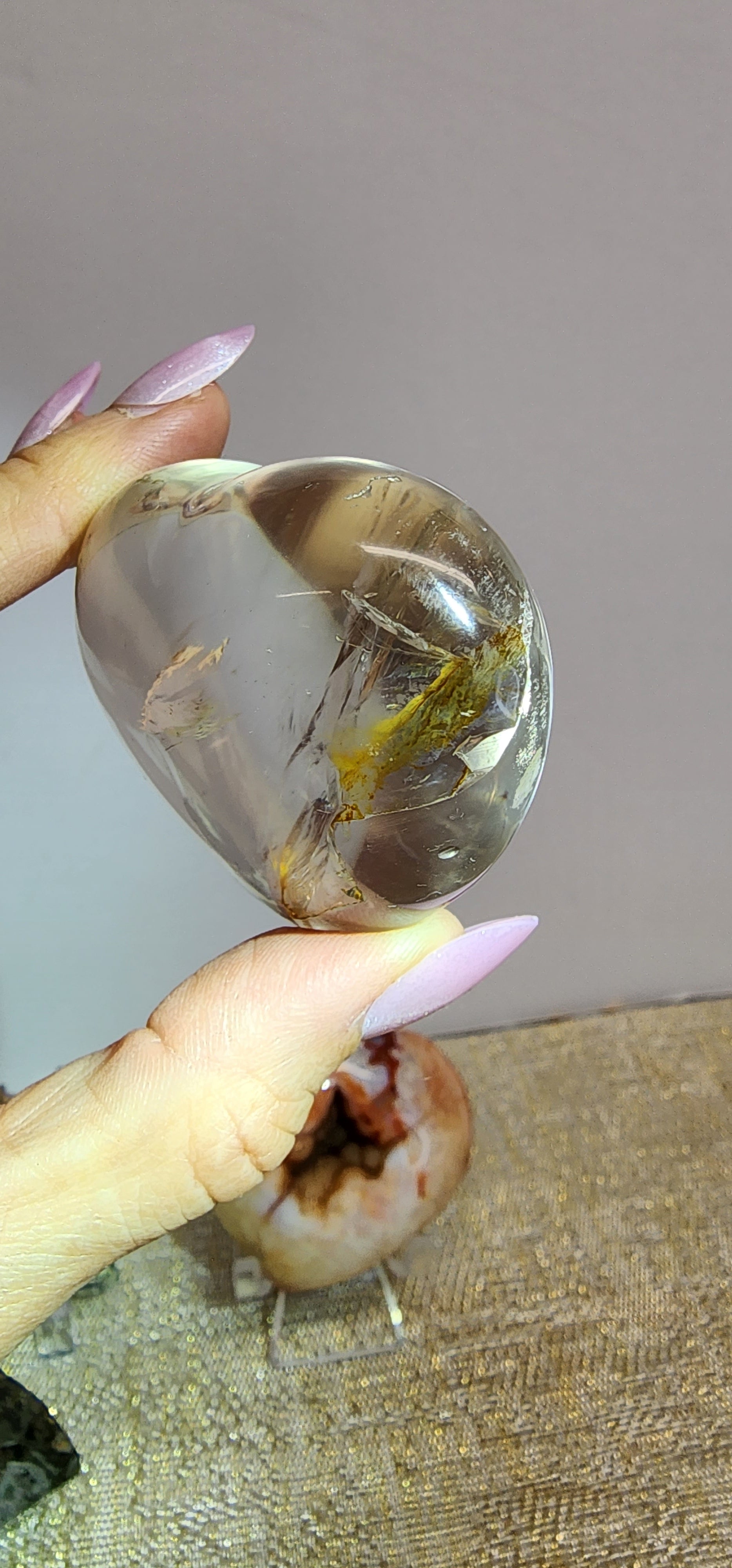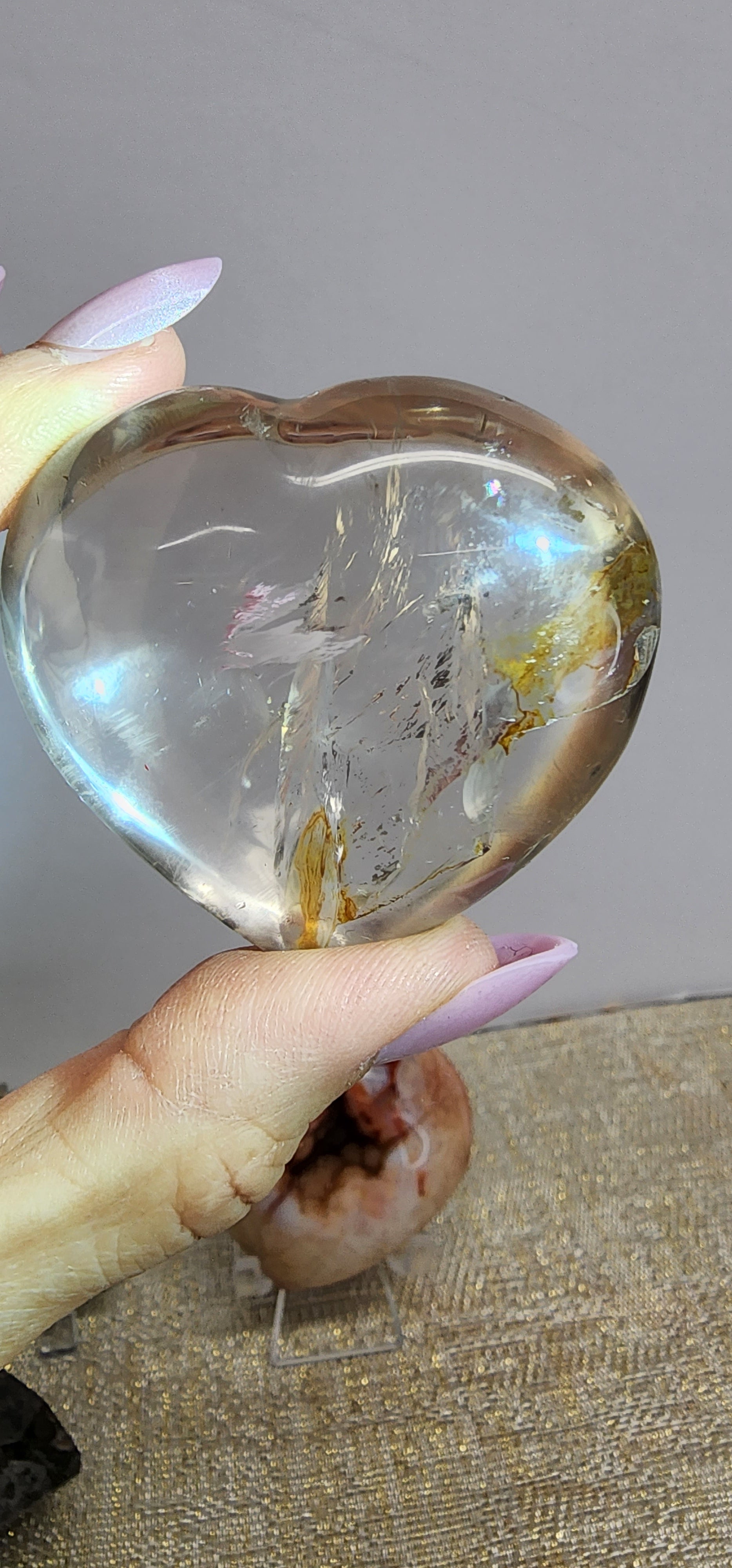 1 Optical Quartz Heart w/ Golden Healer inclusion $38