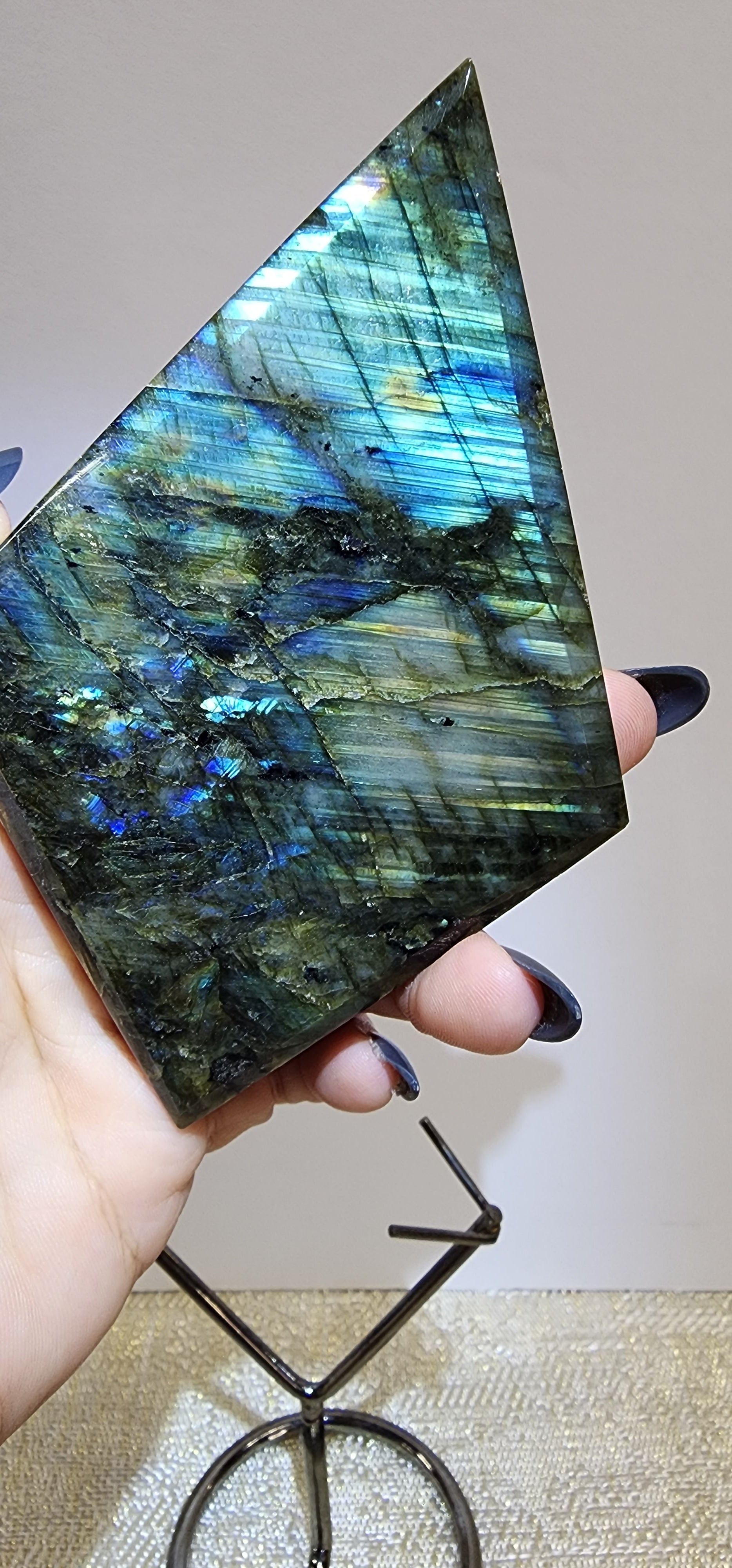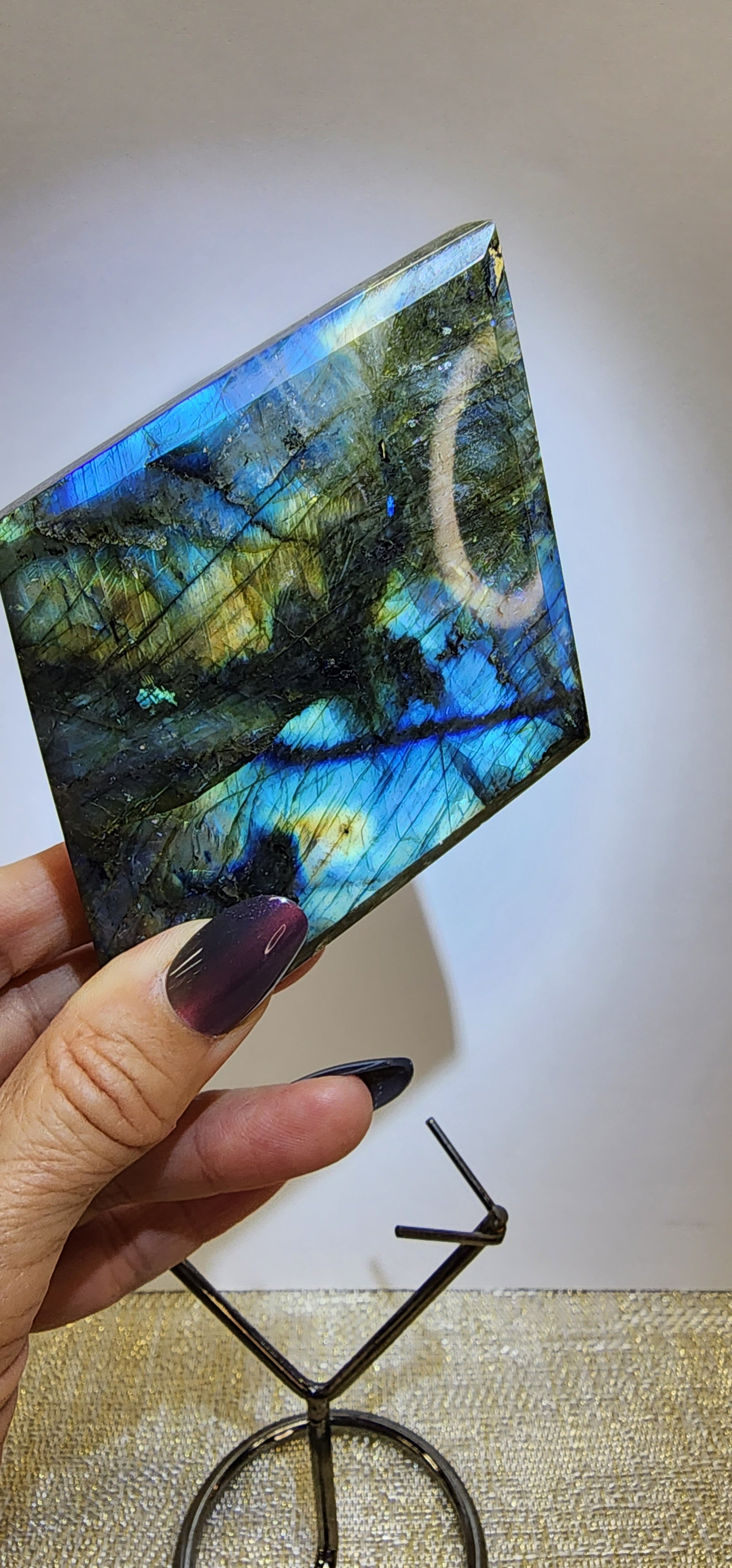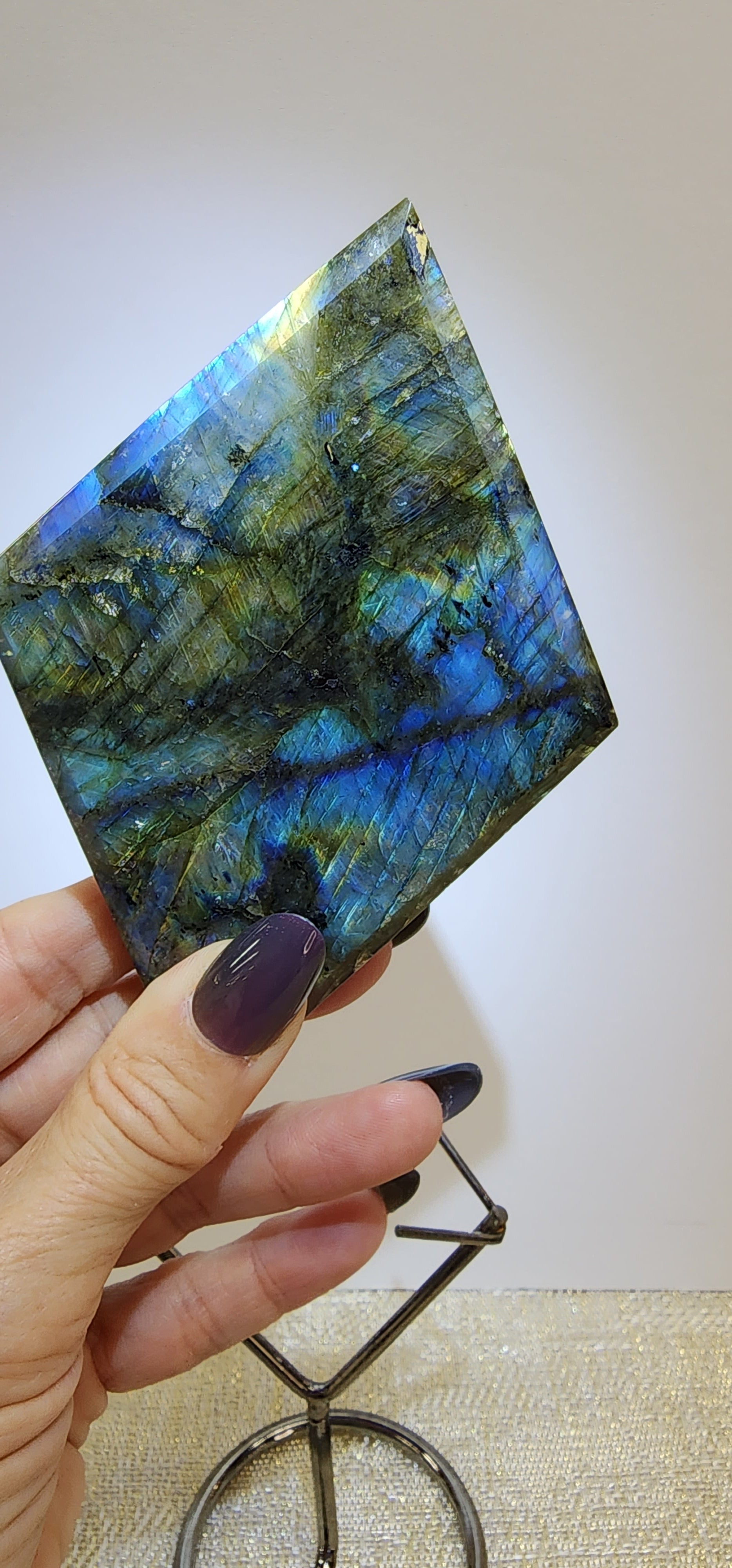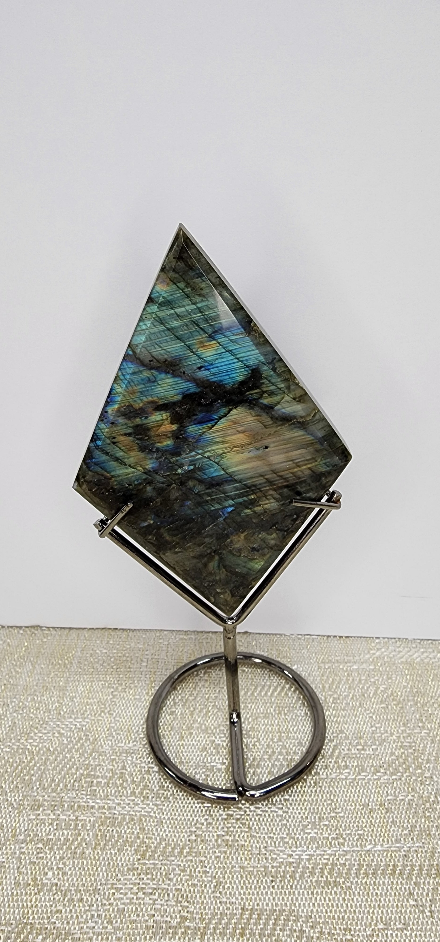 1 Labradorite flash Diamond Shape W/Stand $95