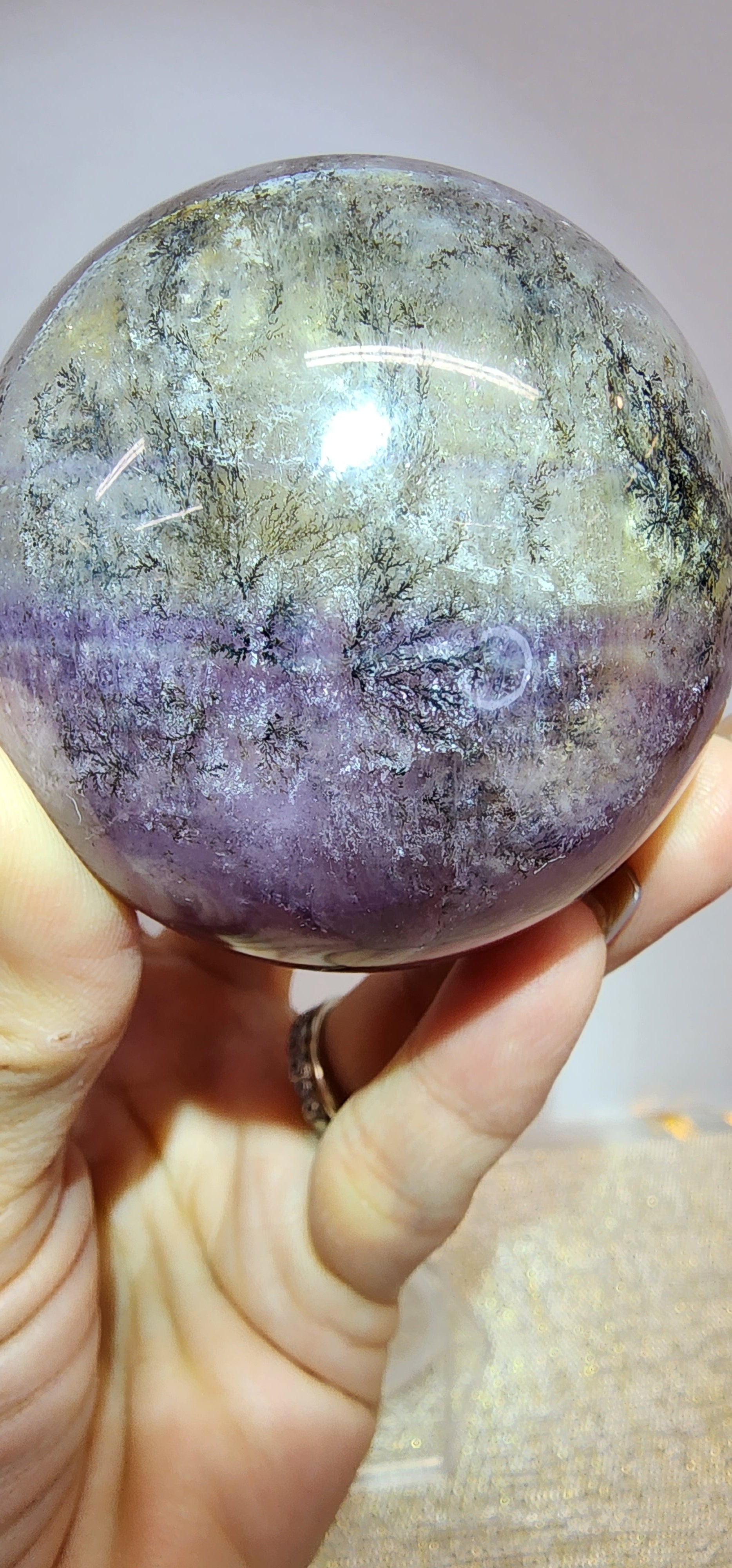 1 Dendritic Silk Fluorite Sphere $155