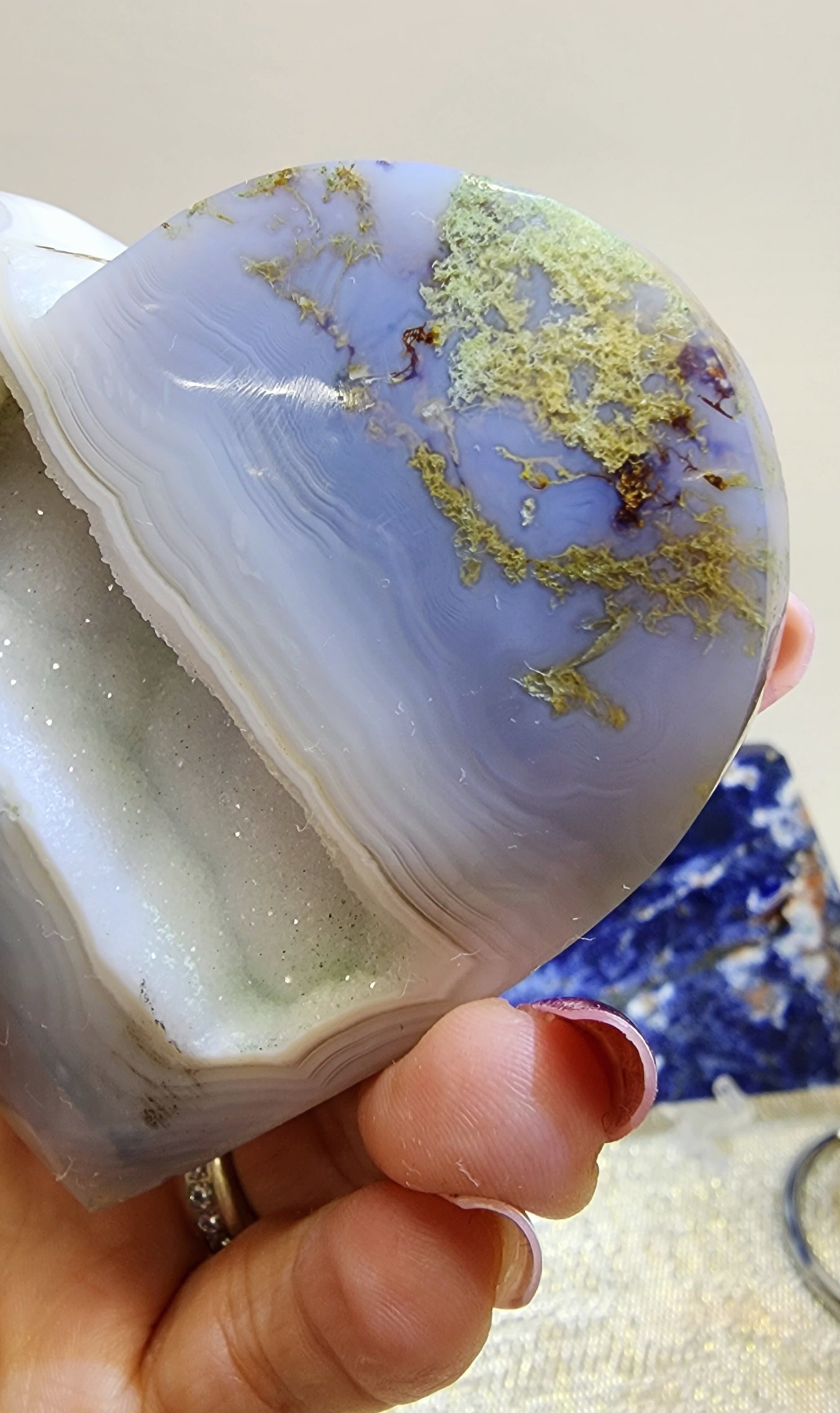 1 Druzy Agate W/ Moss on Metal StandĀ $95-$20(scuff) =$75