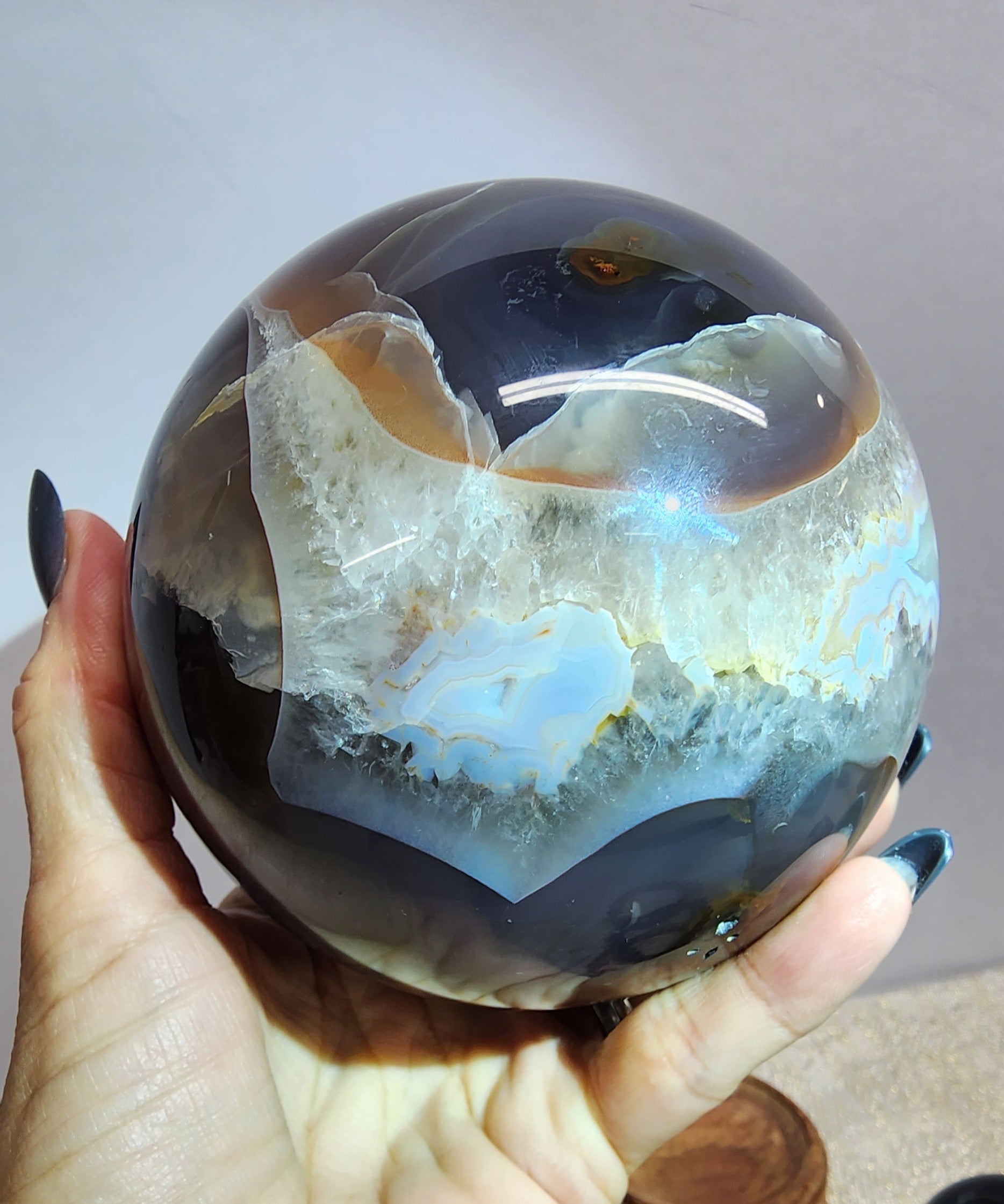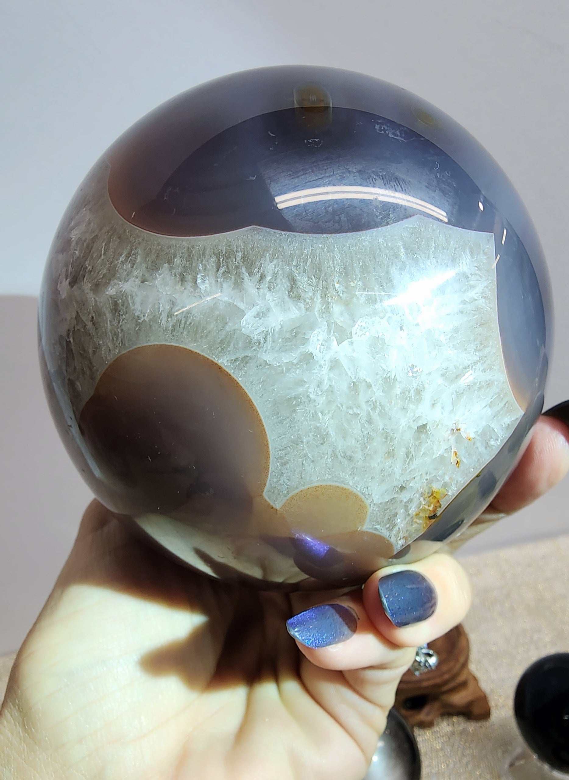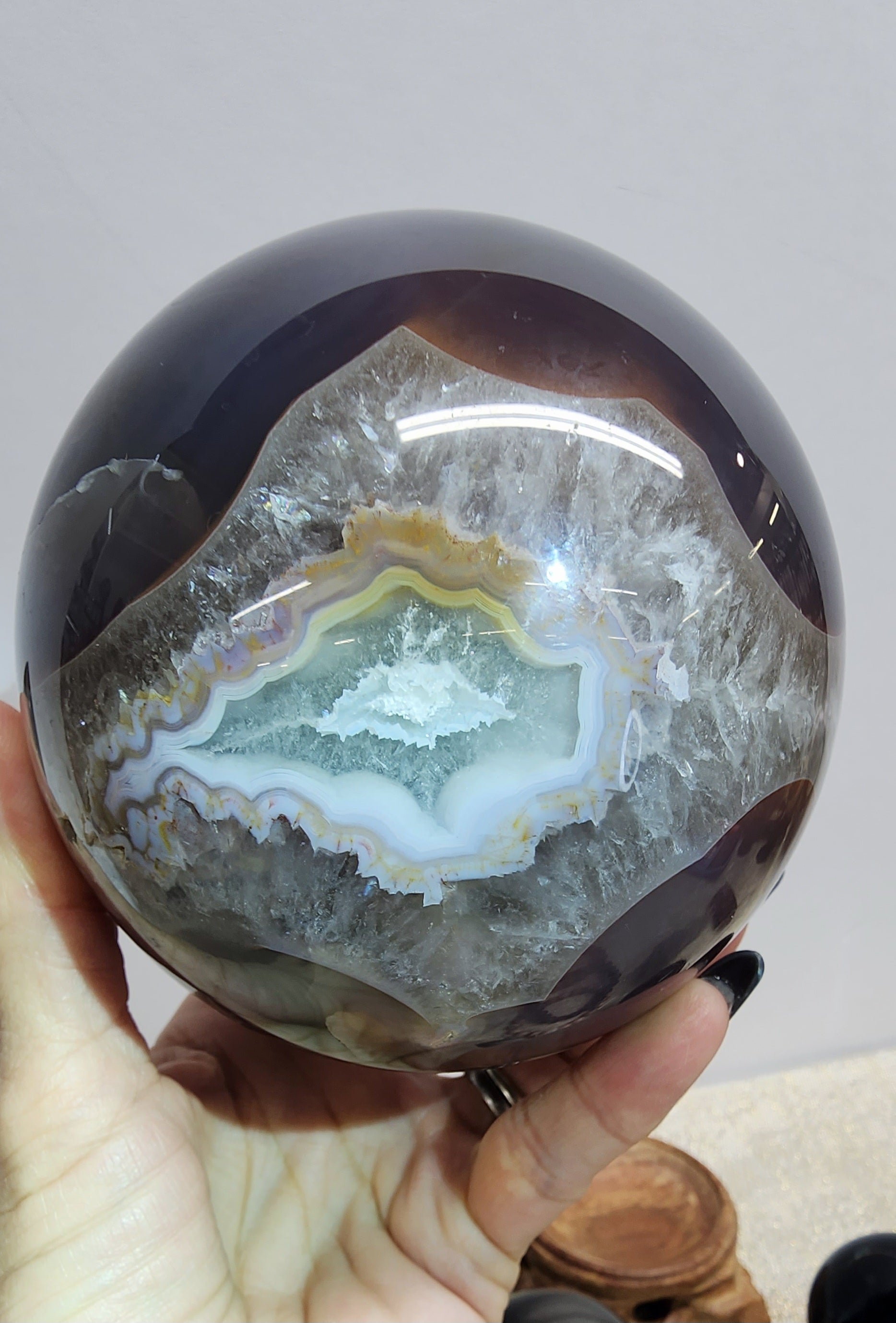 1 Large 100mm Agate/Quartz Sphere W/ Hematoid inclusion $350