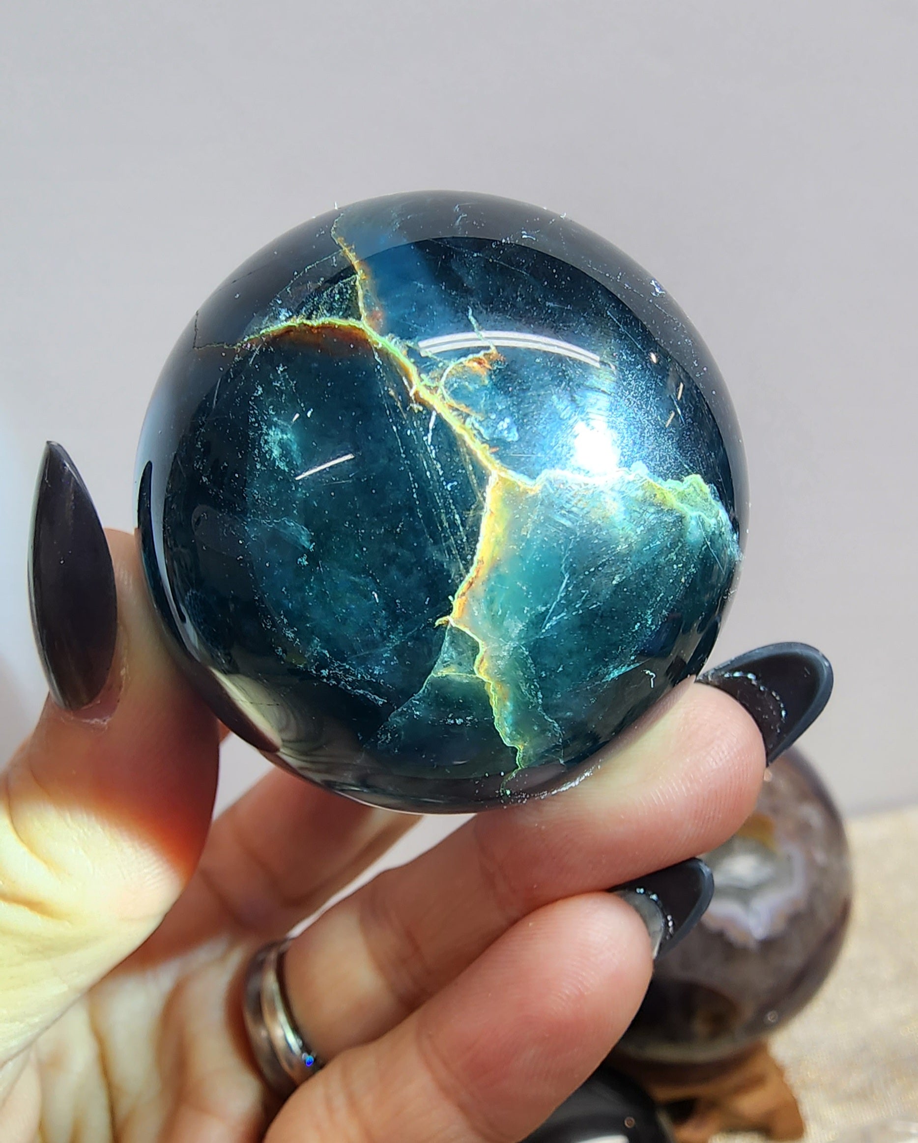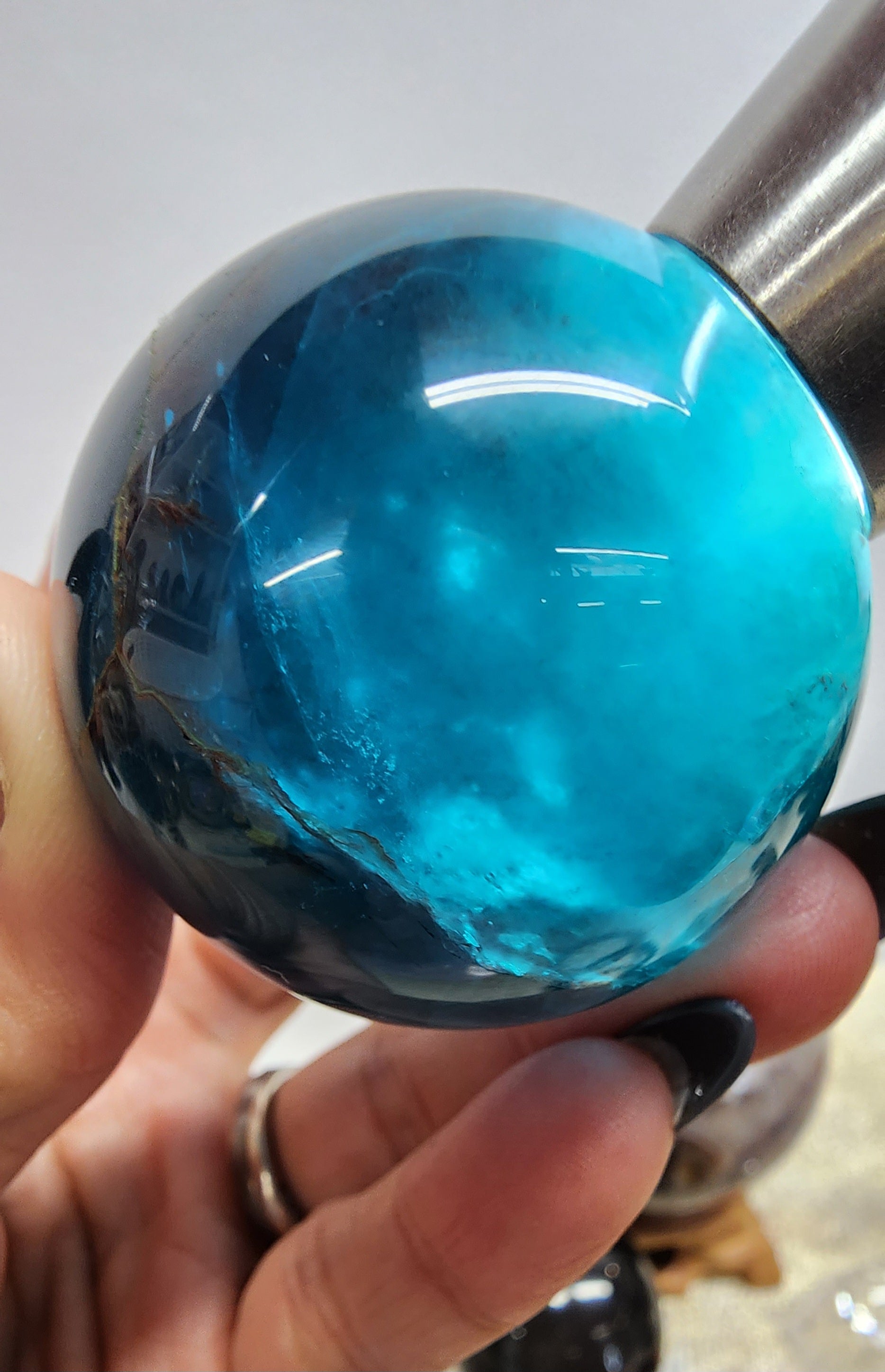 1 Blue Flourite Sphere w/Iron Inclusions $65