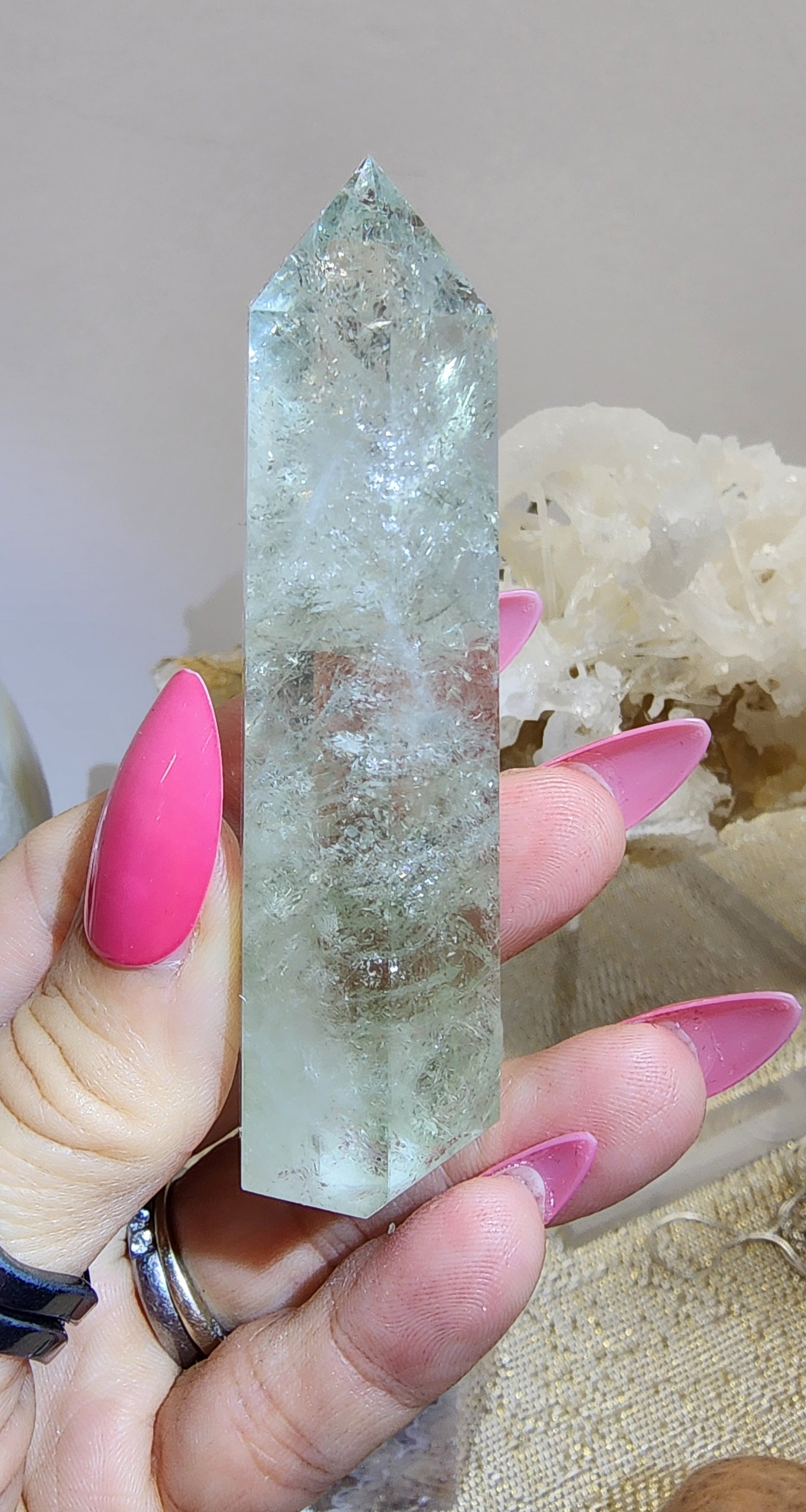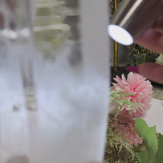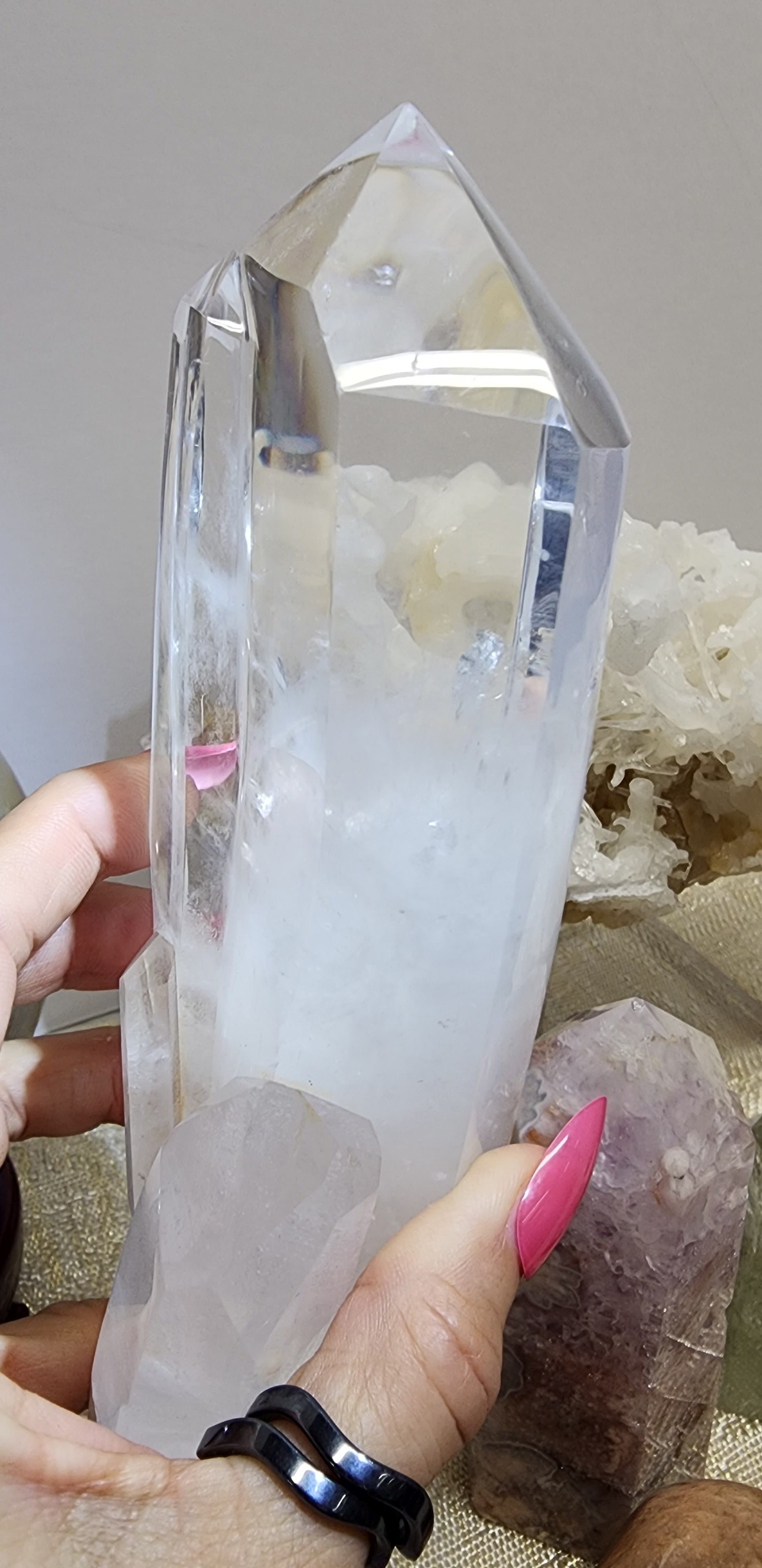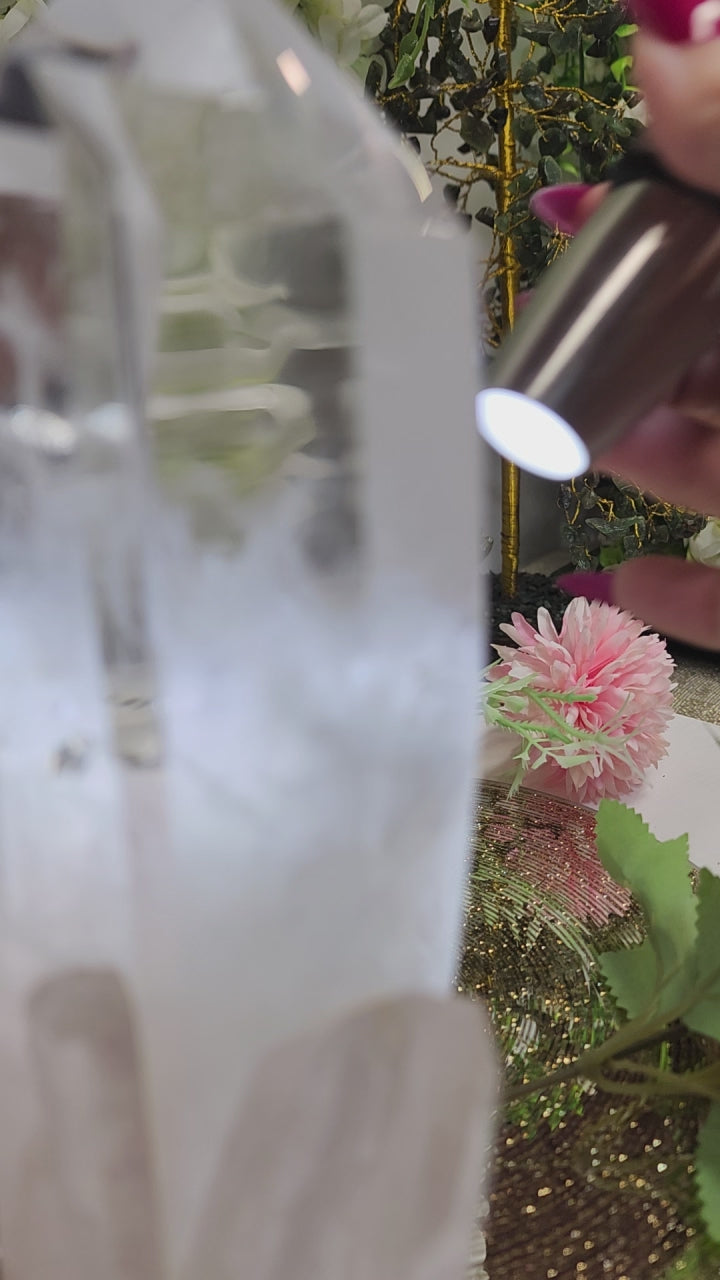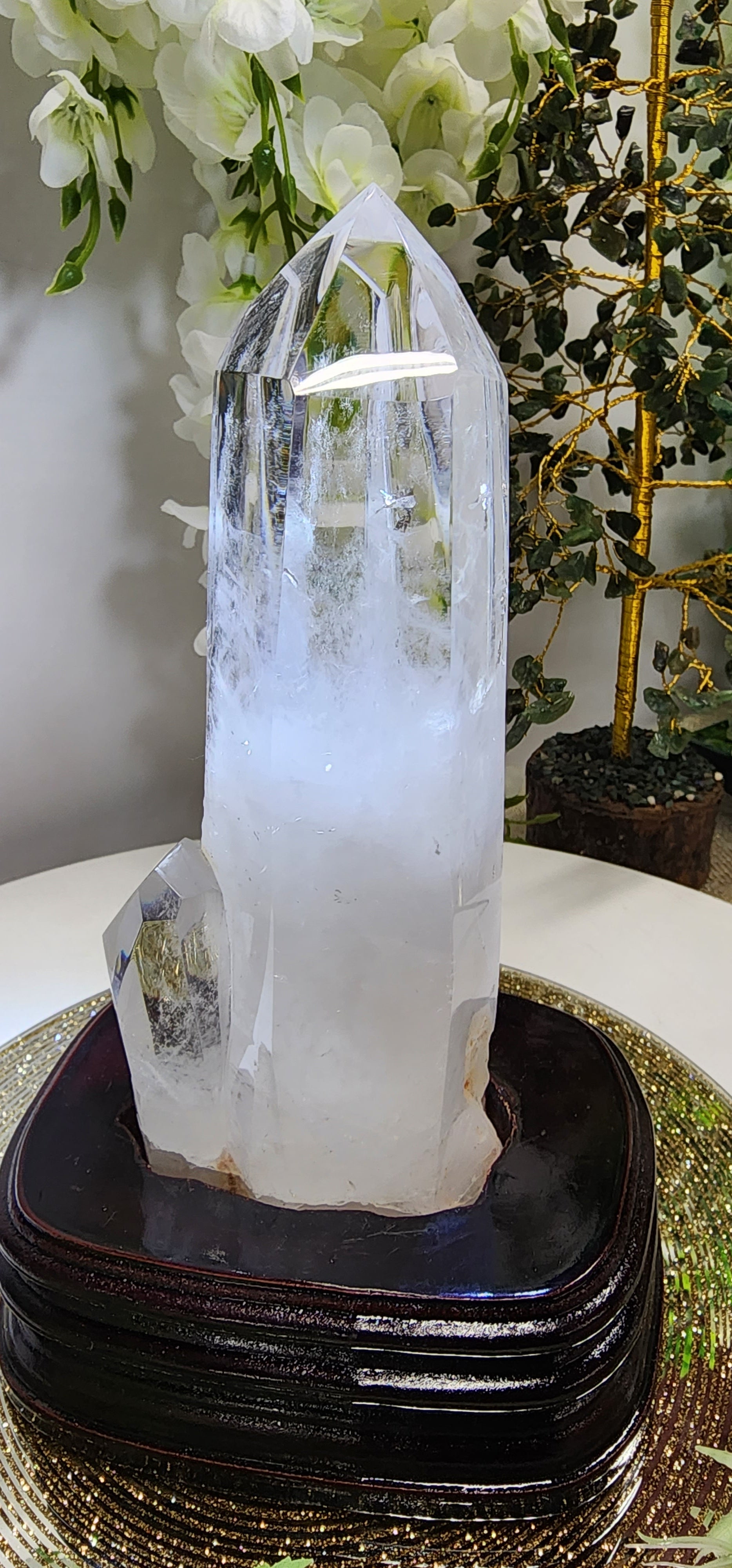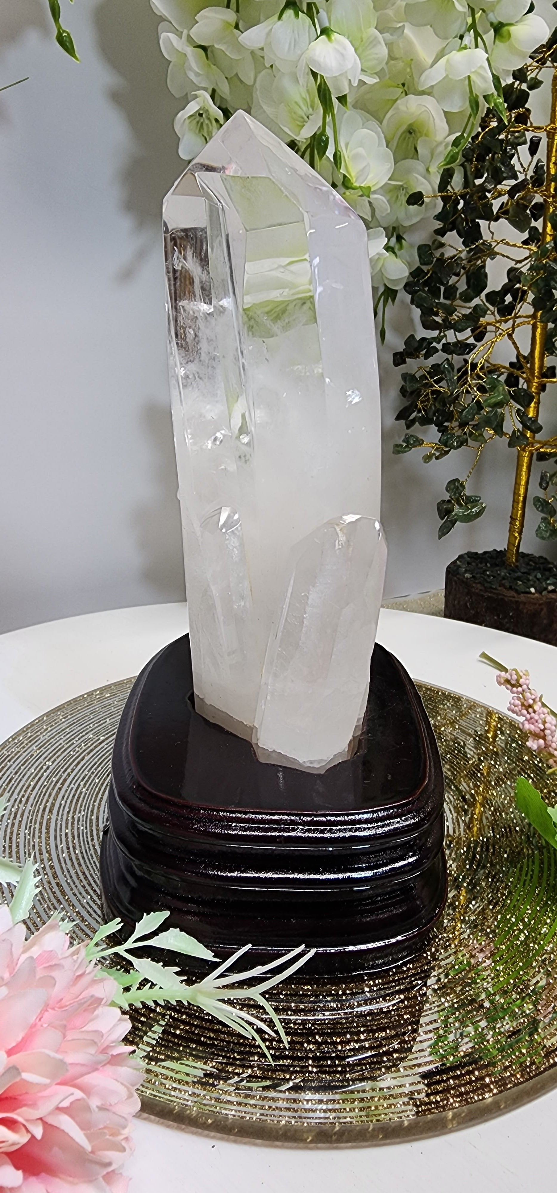 1 HQ Polished Clear Quartz Multi Point From Brazil with Blue Needle. Comes W/Custom wood Stand $232