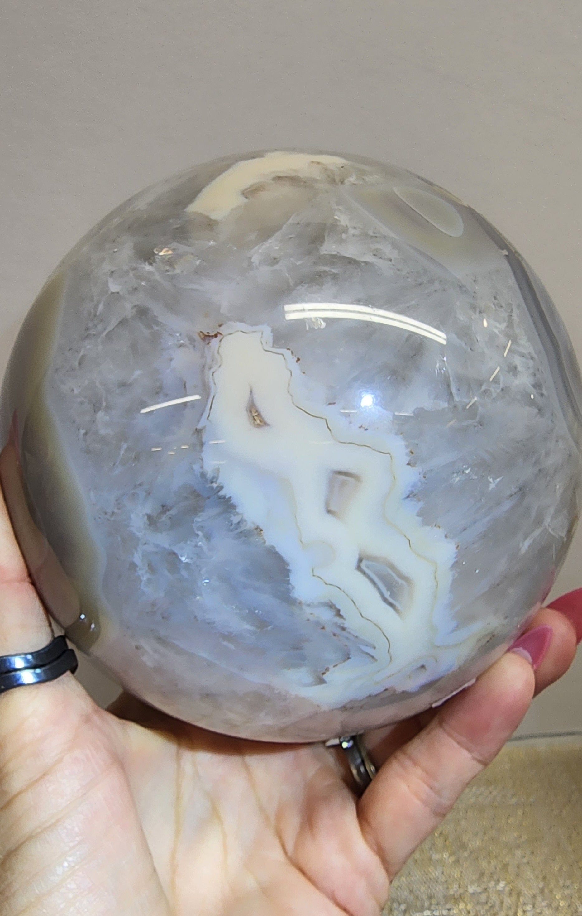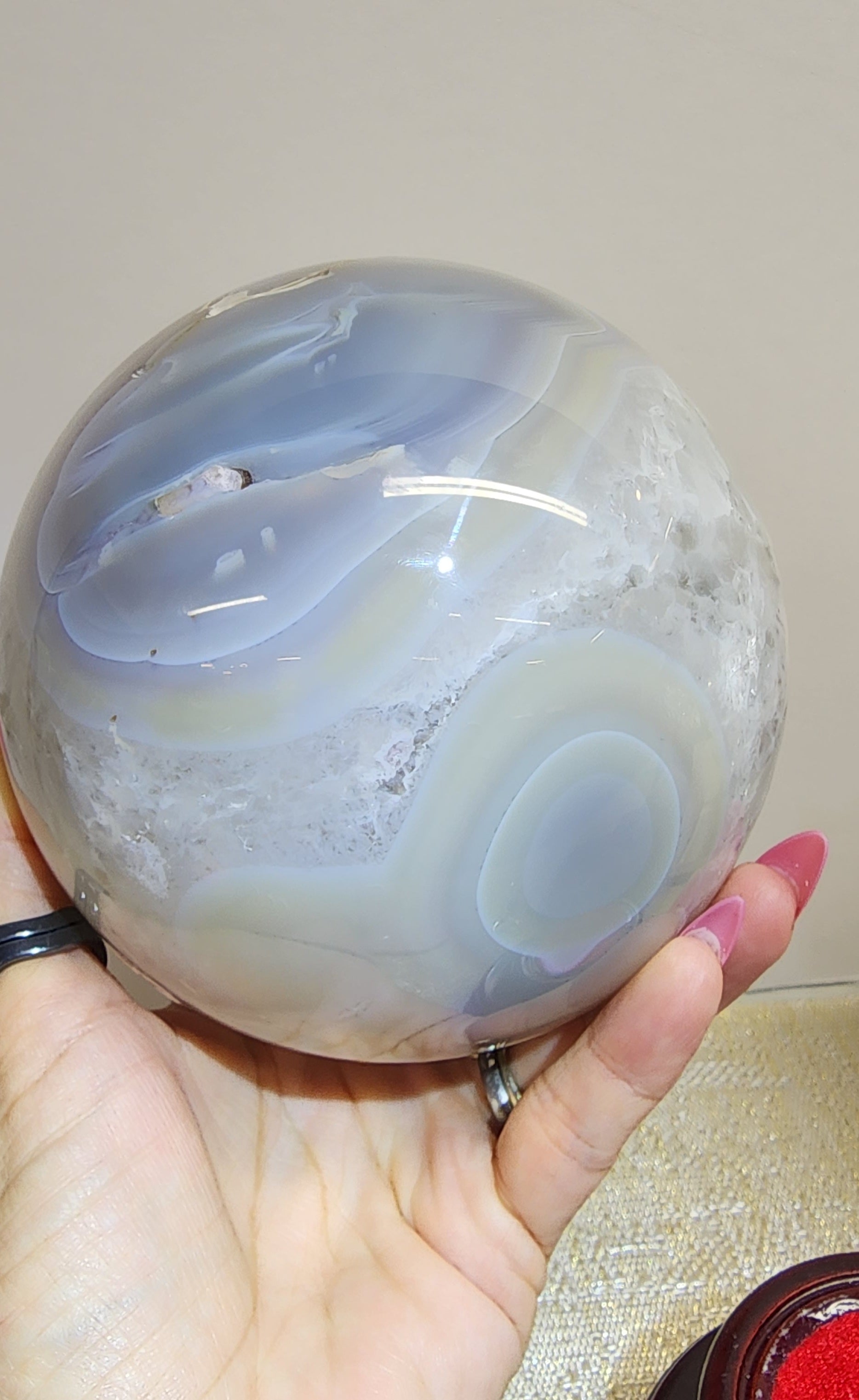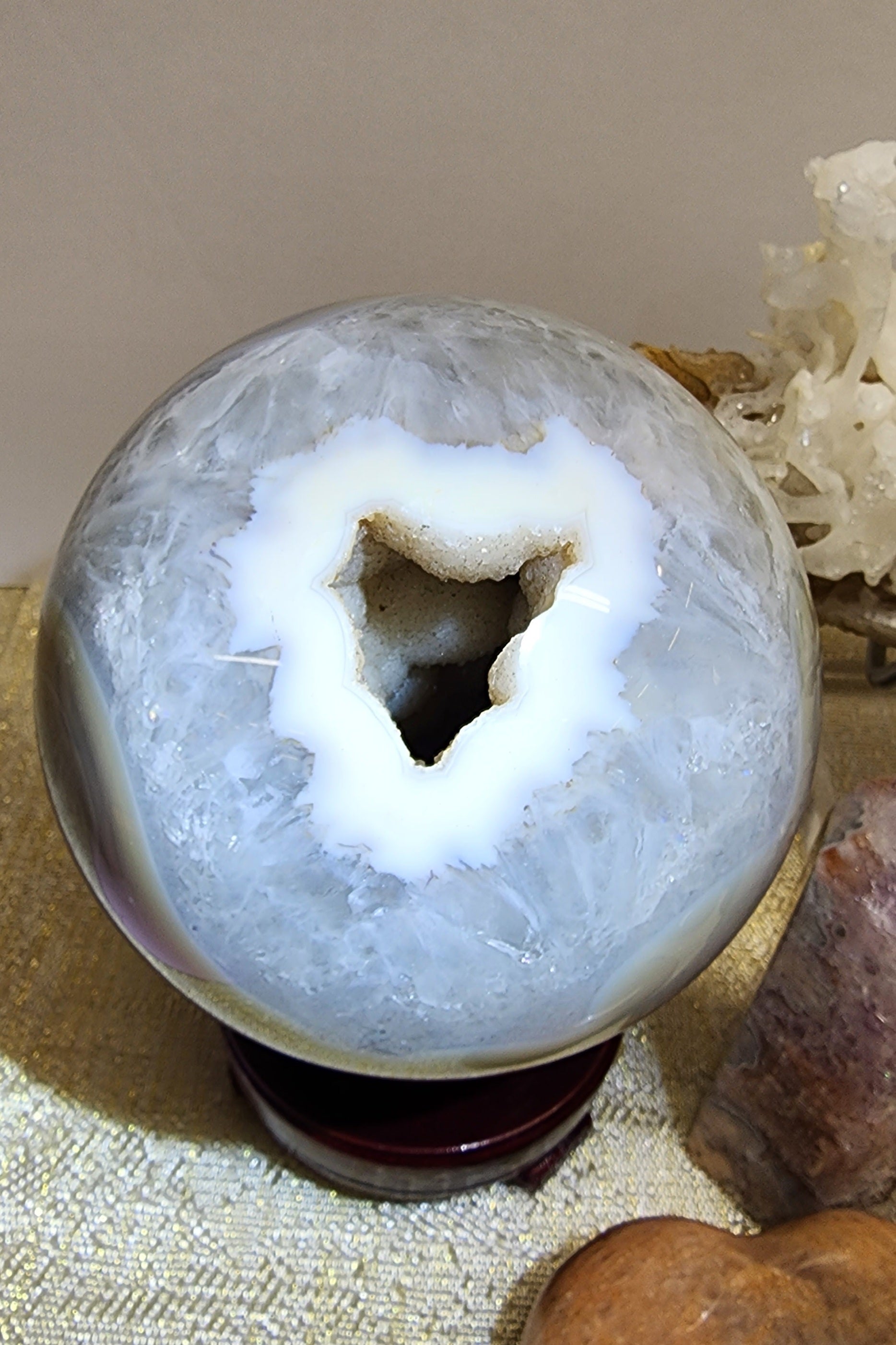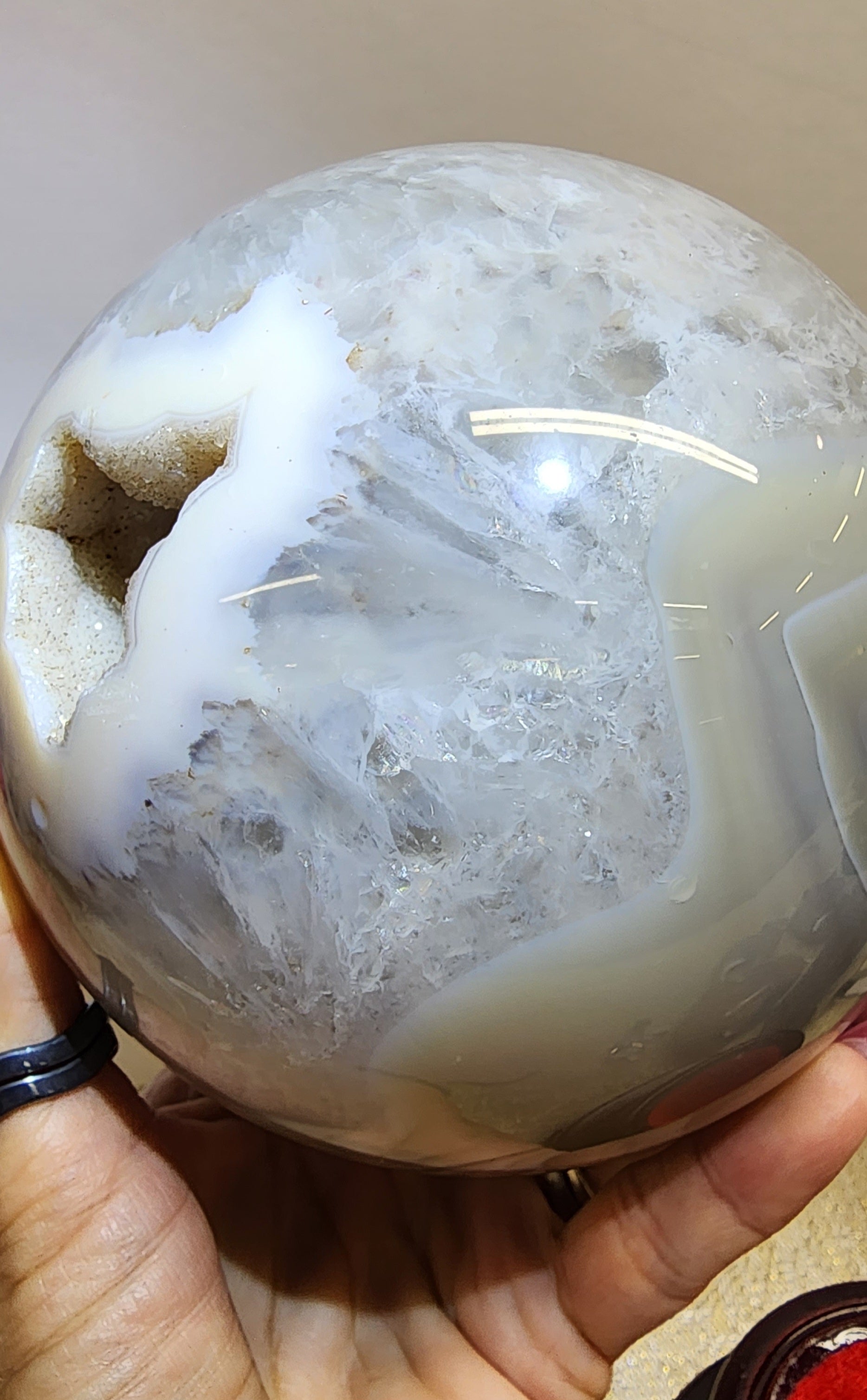 1 Large Druzy Agate and Quartz Sphere W/Stand $345