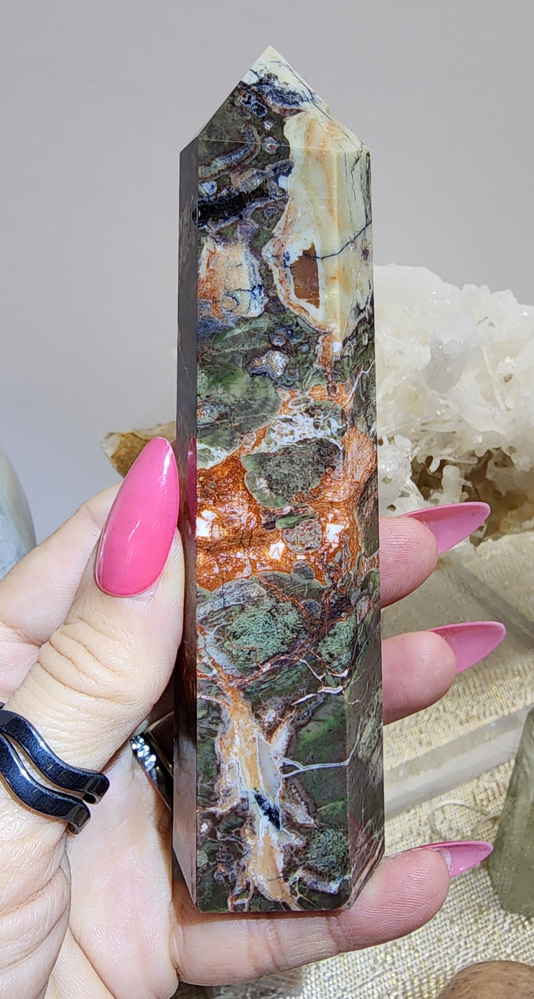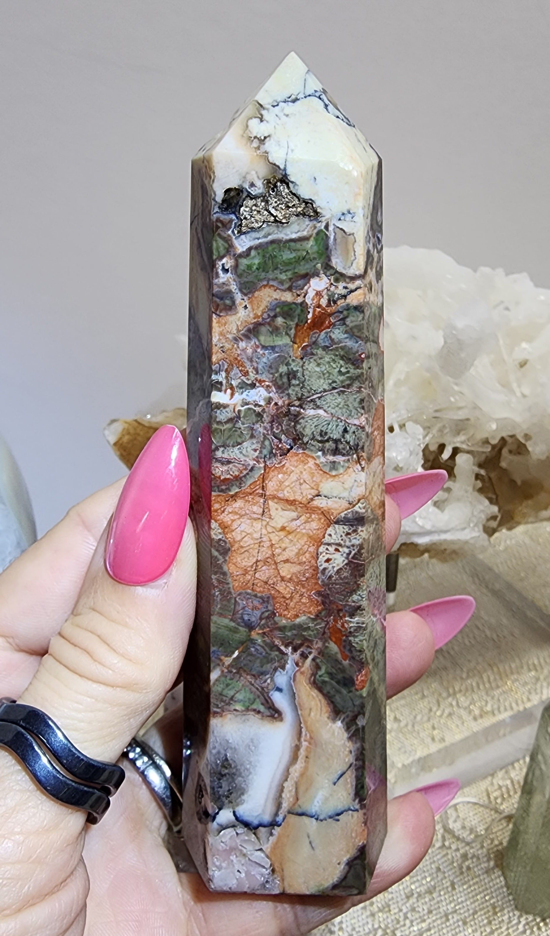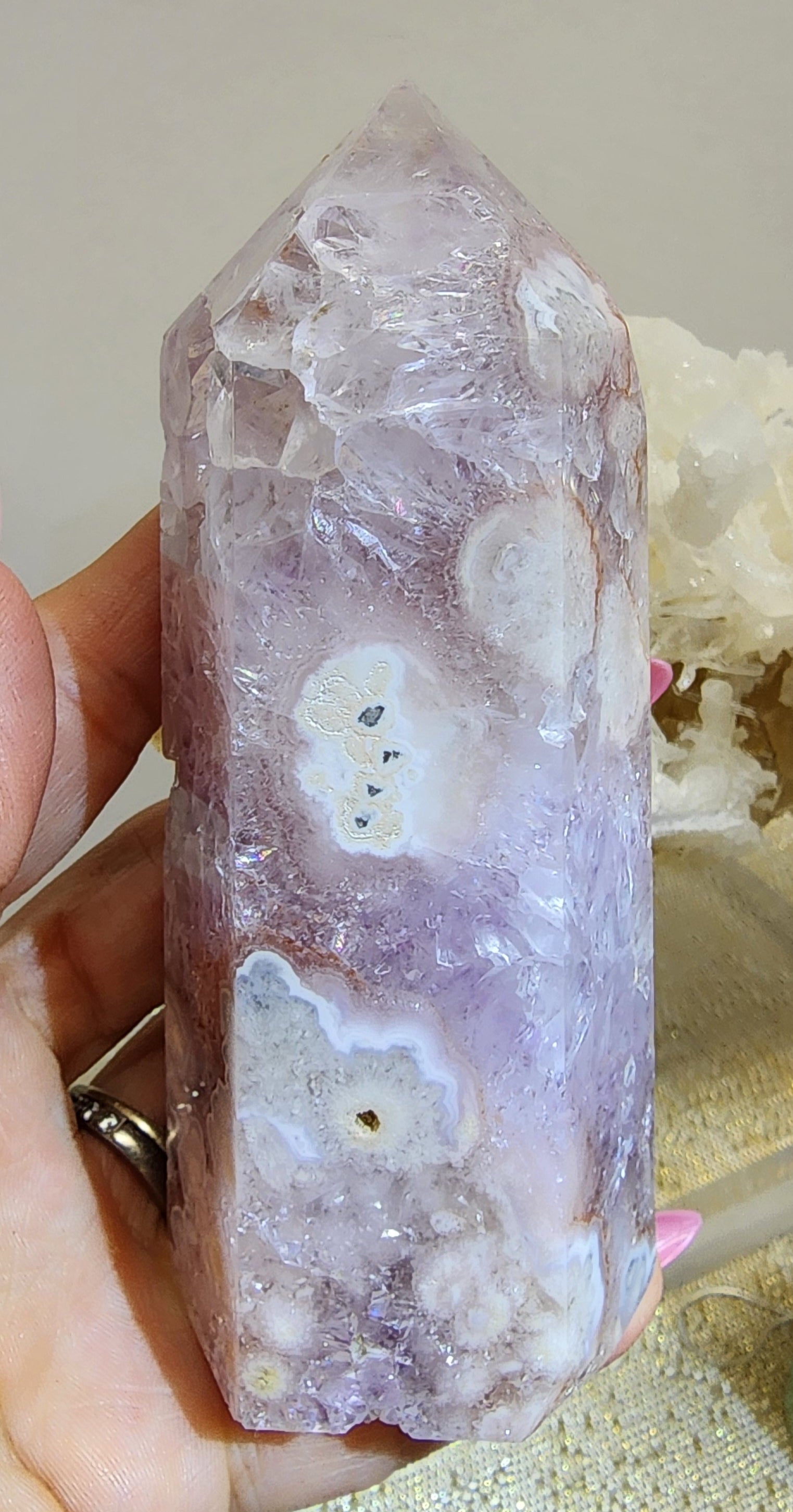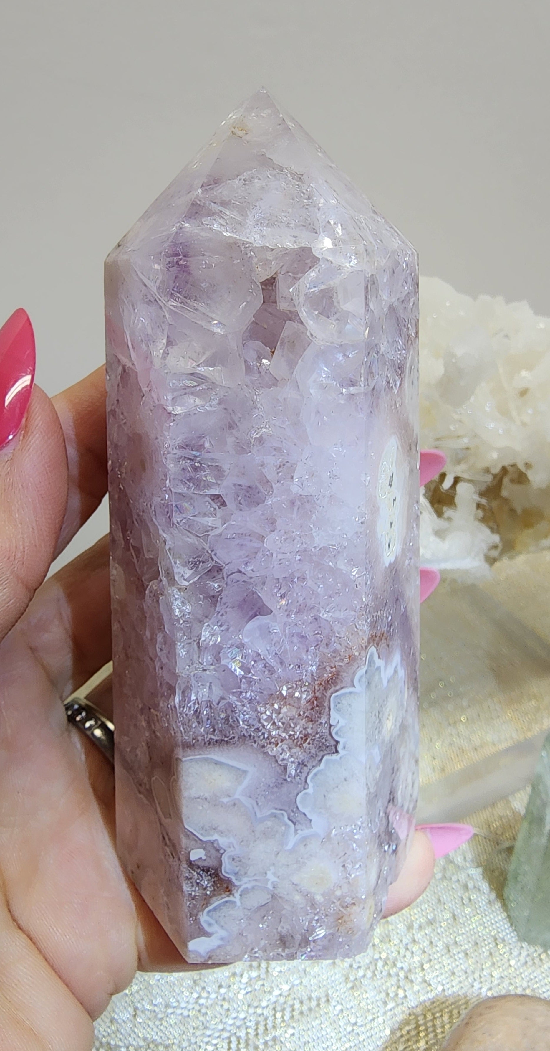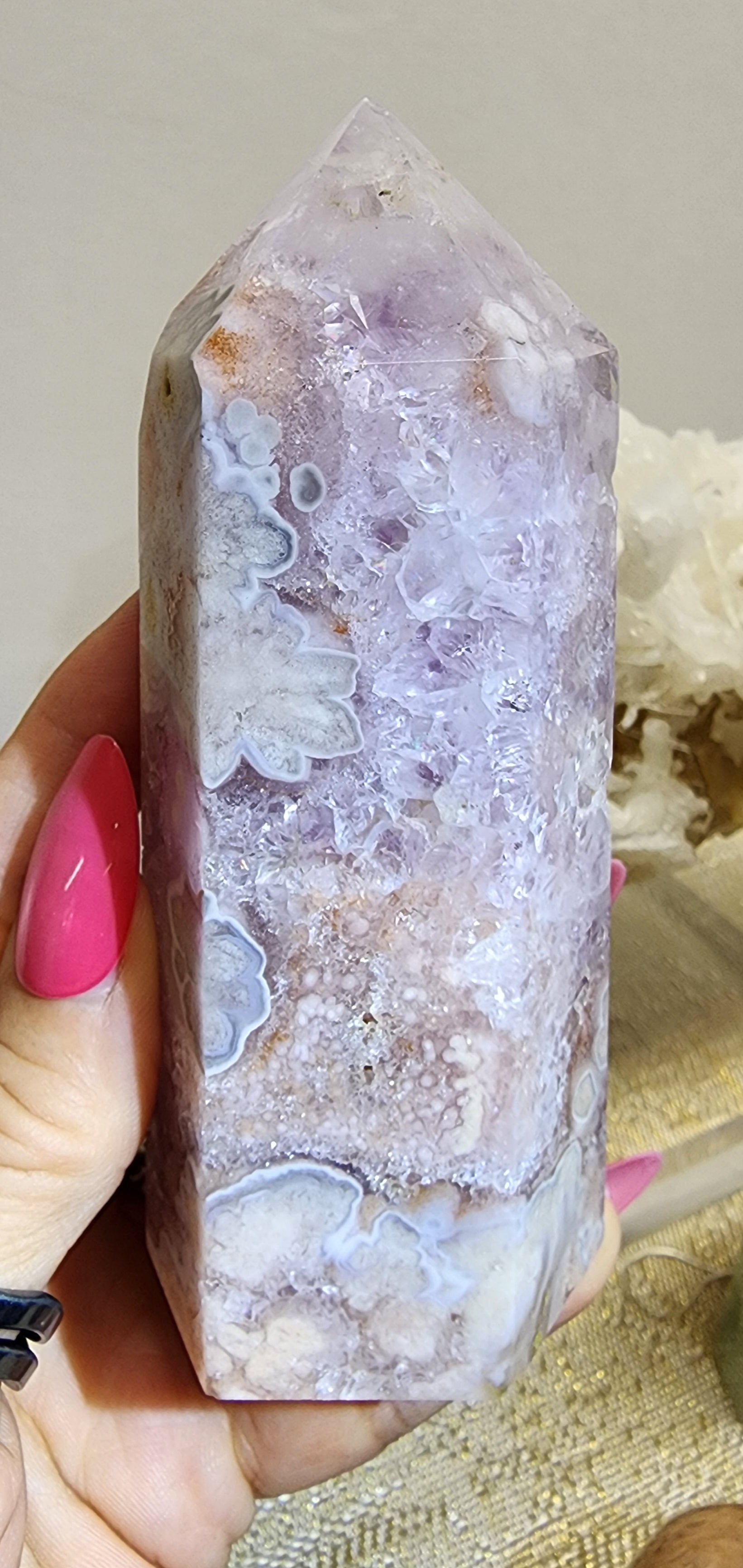 1 Purple Pink Amethyst/Flower Agate and Quartz Chunky Tower $180