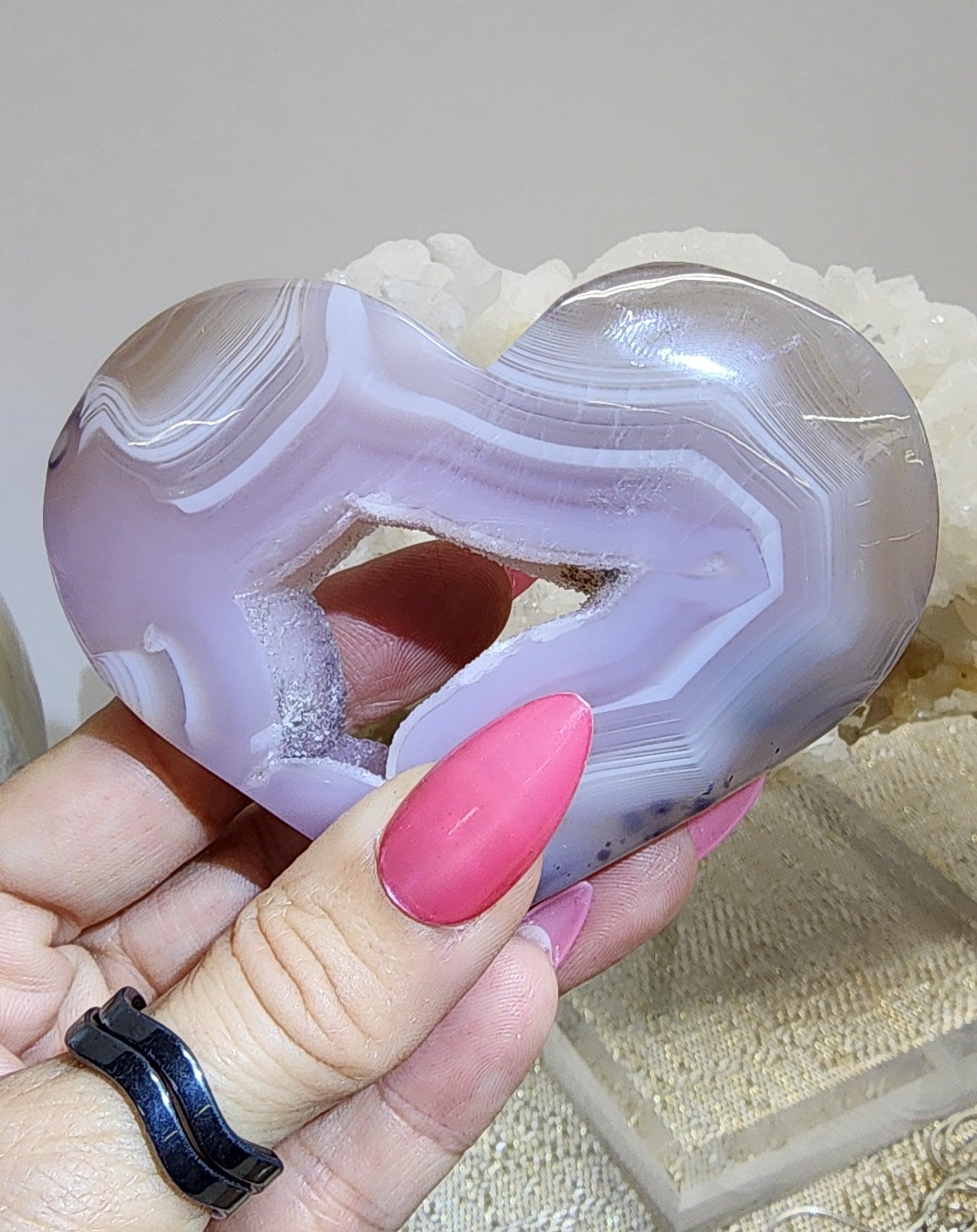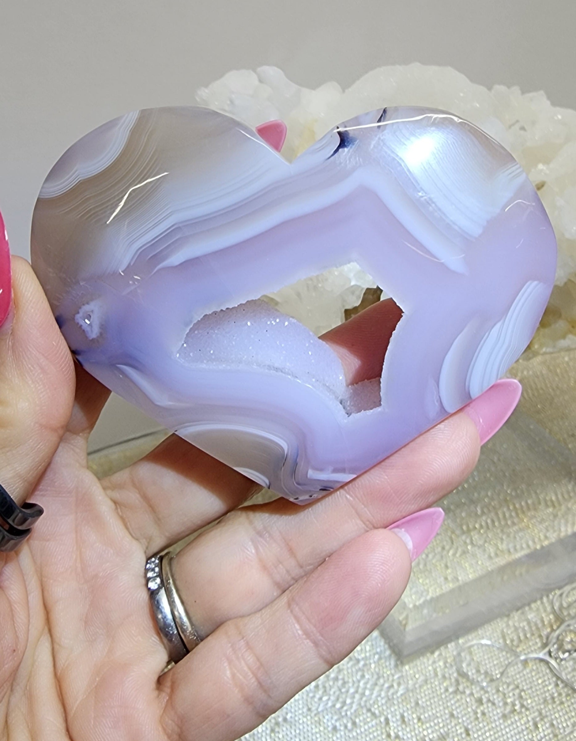 1 Jelly Agate Druzy Portal heart w/Dendrite $96