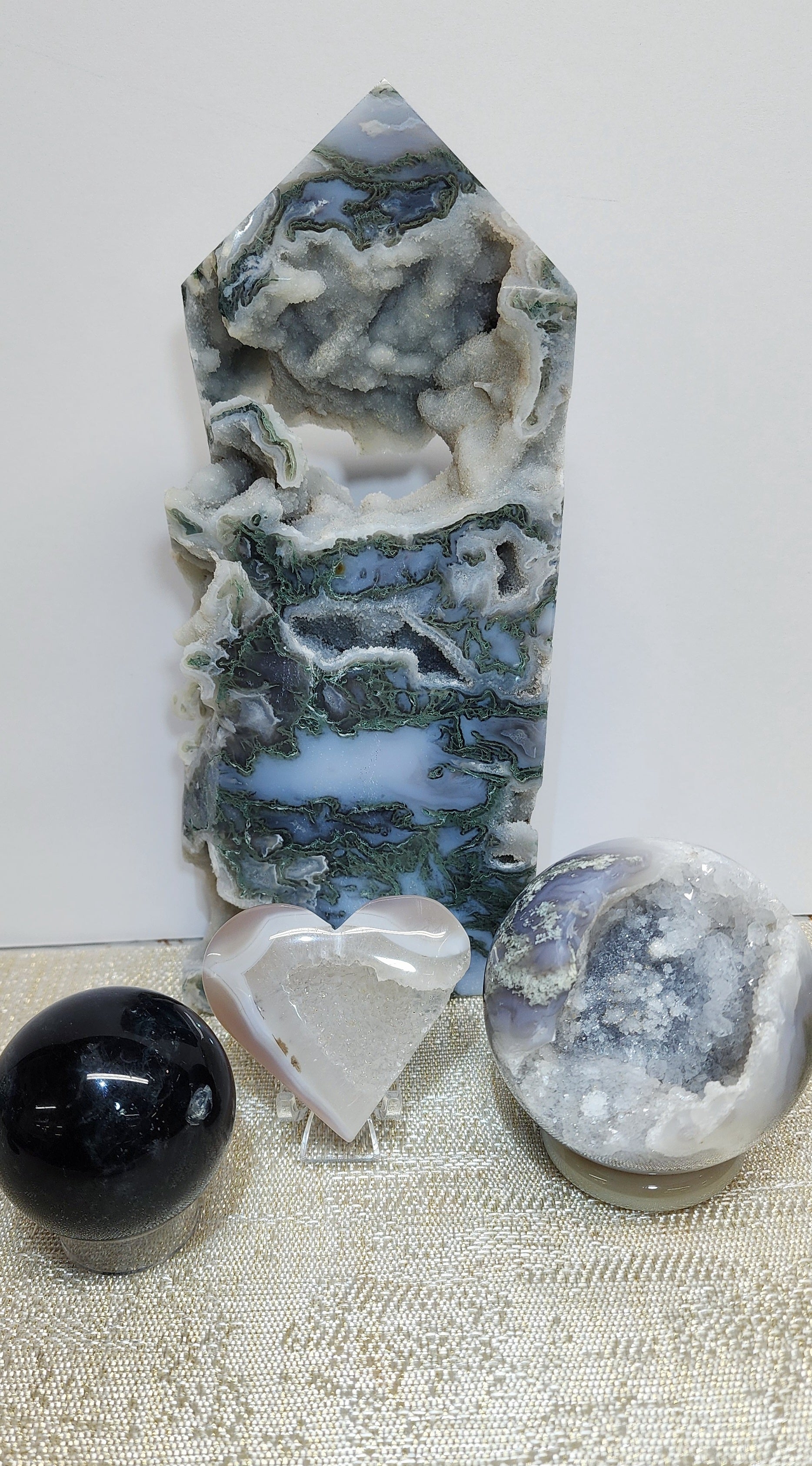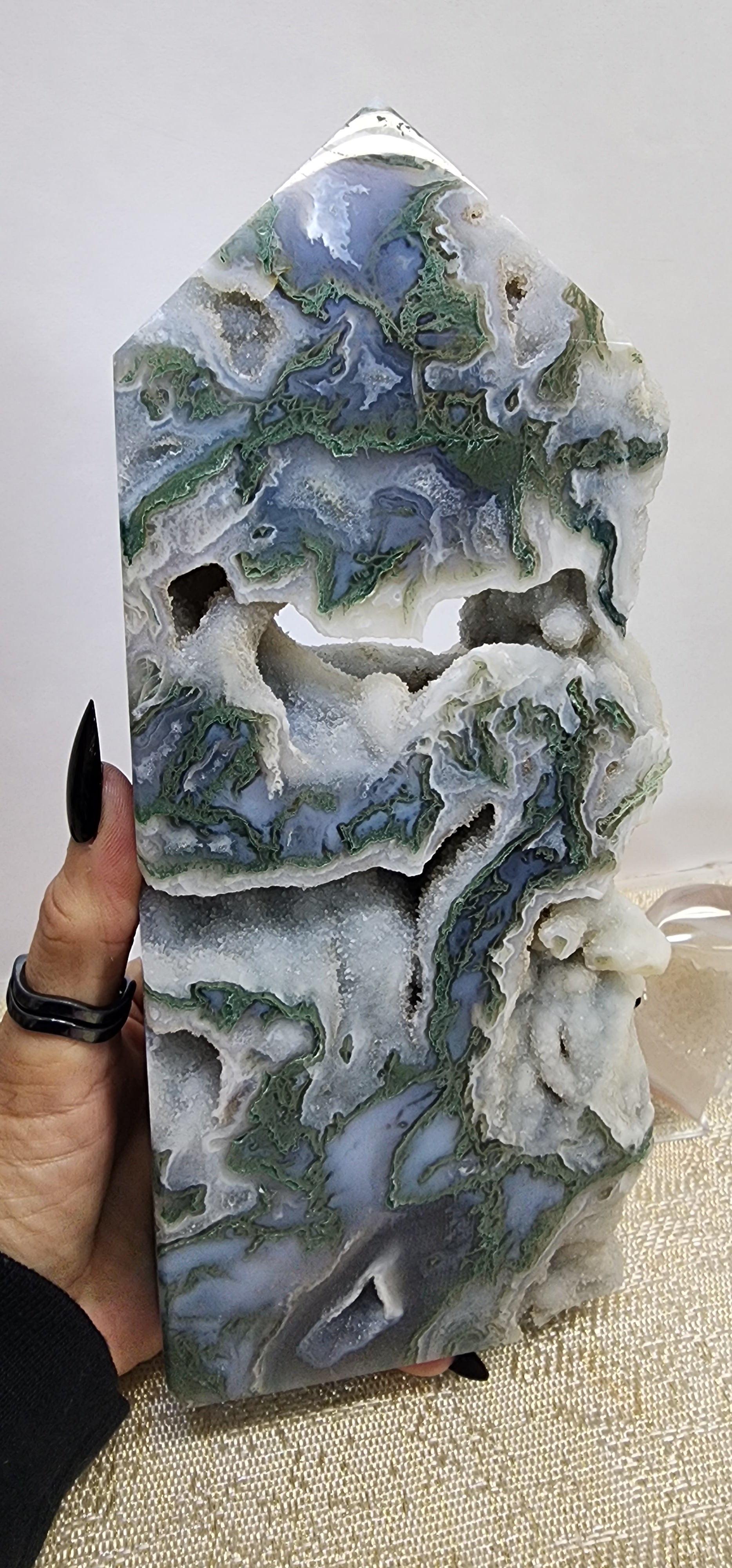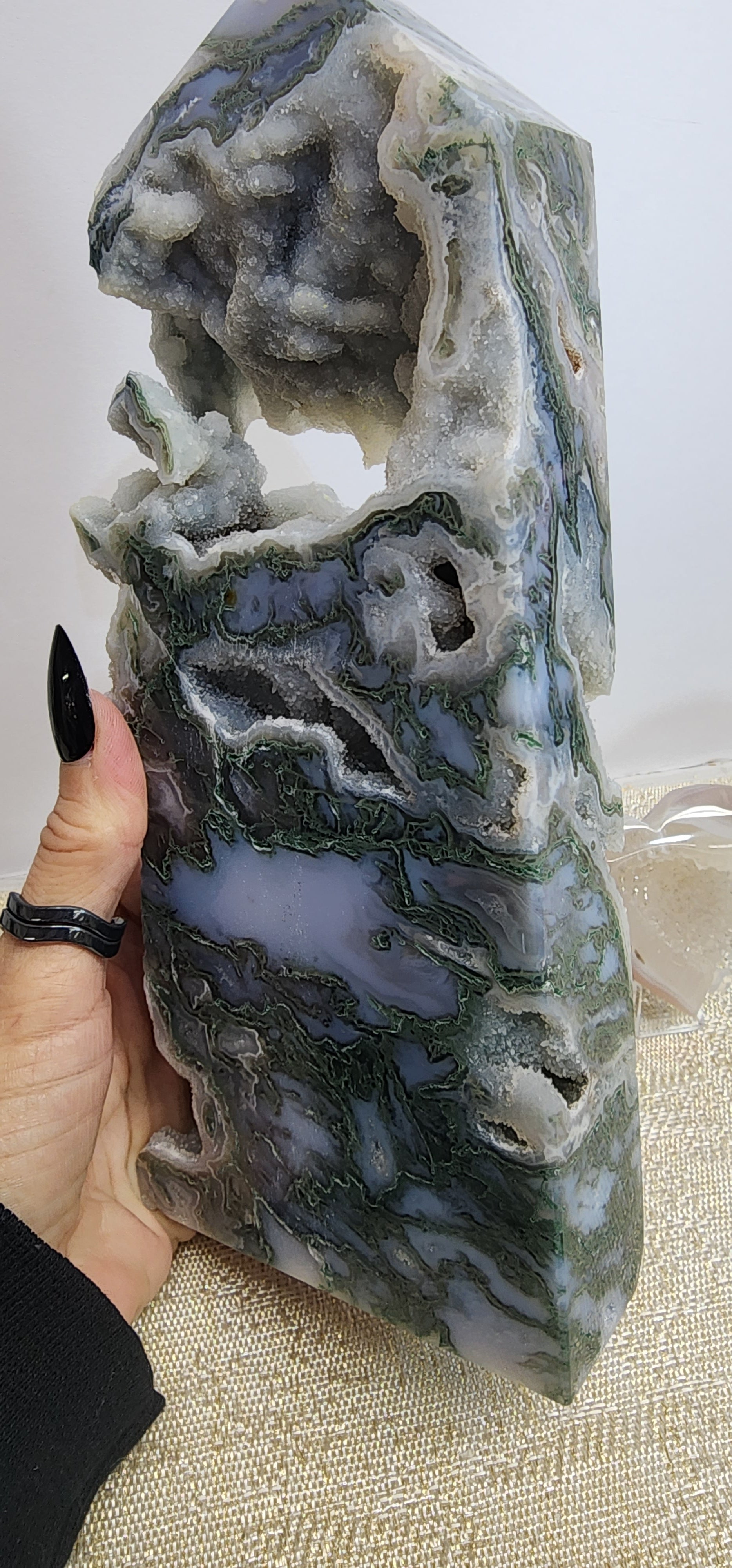 1 Extra Large Druzy Moss Agate Tower $292