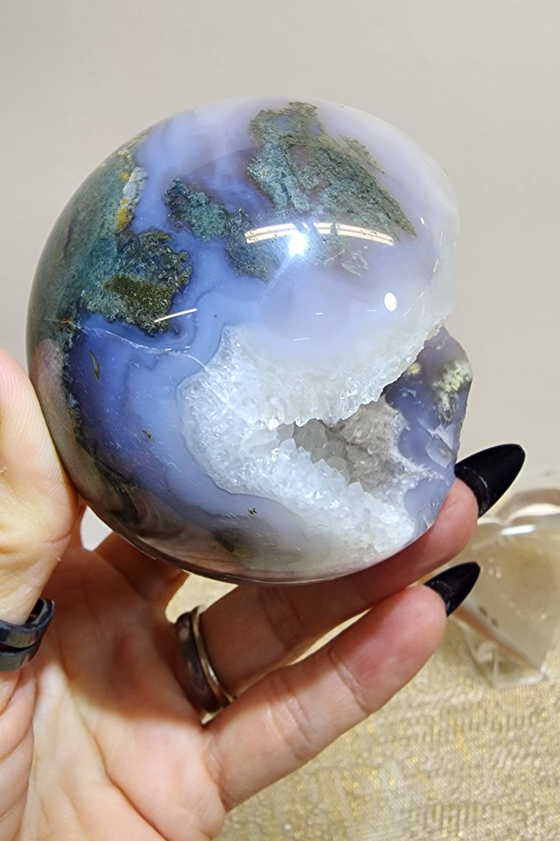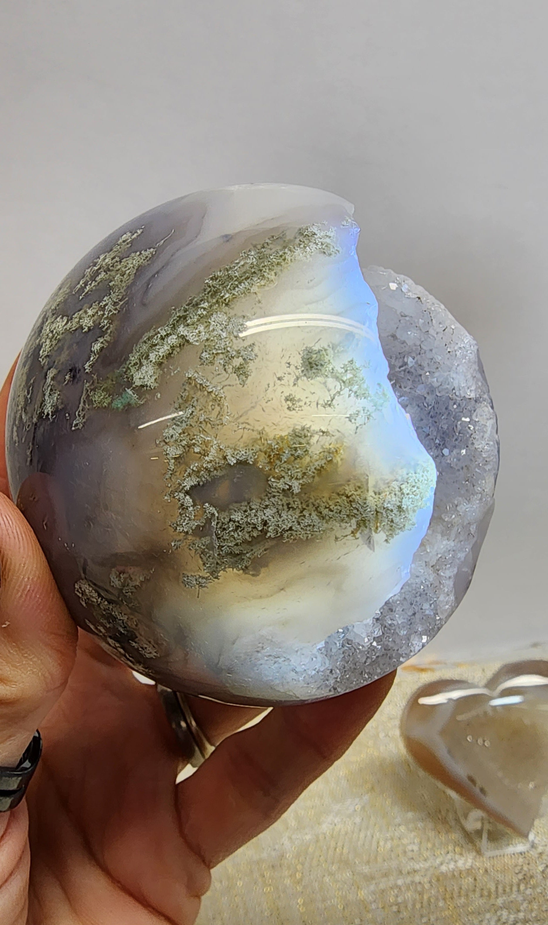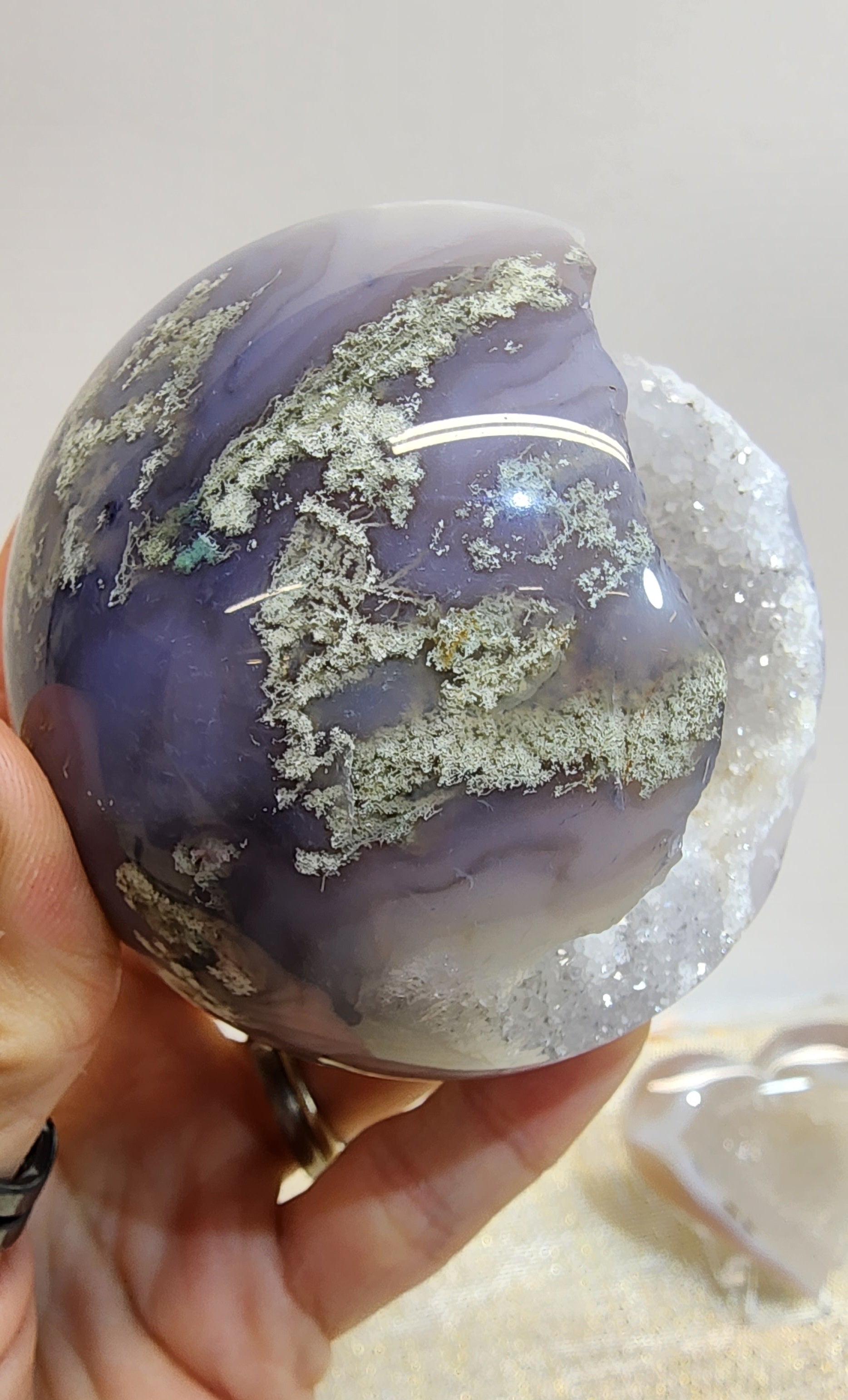 1 Druzy Moss Agate Sphere $138