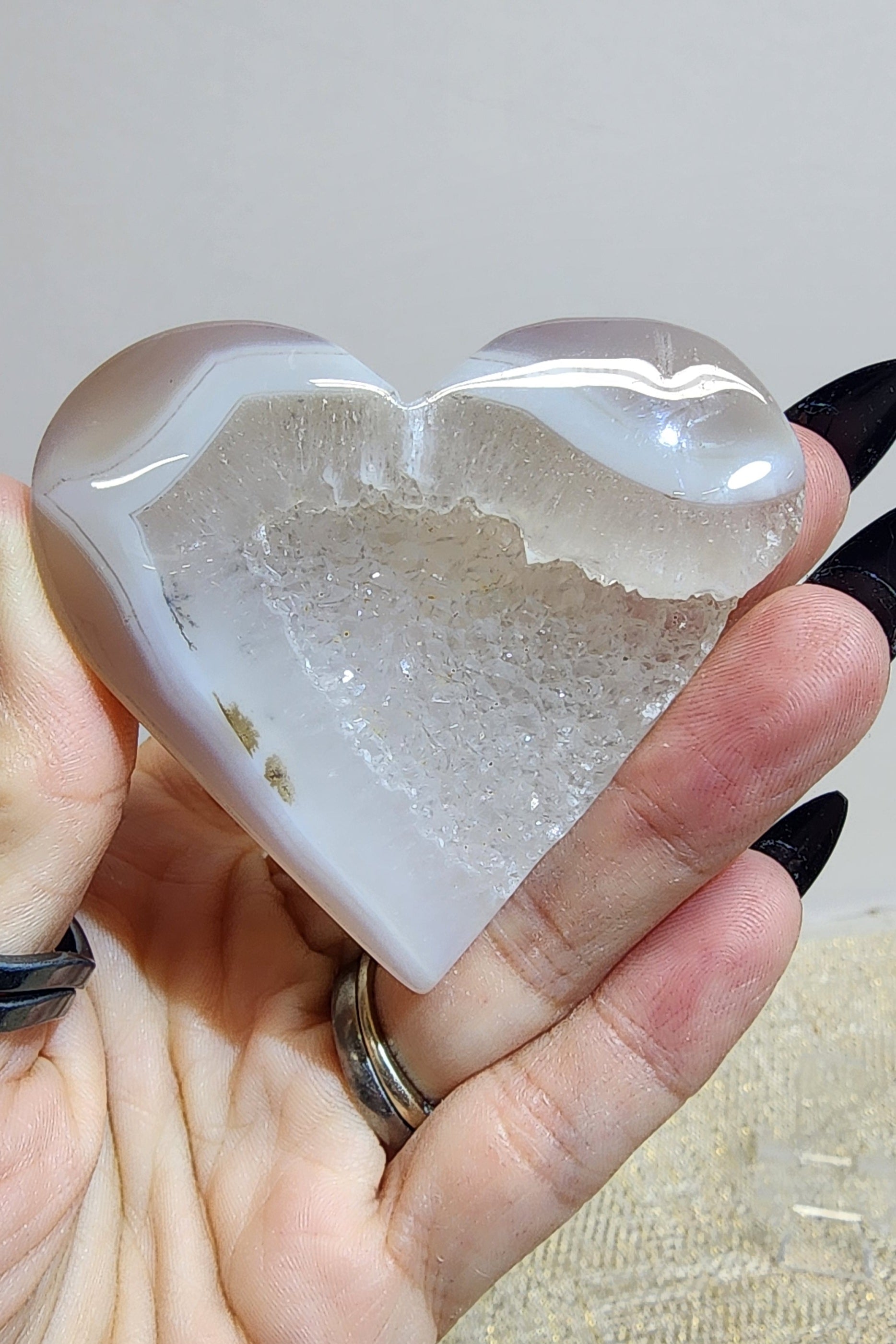 1 Druzy Jelly Agate Heart w/ Dendrite inclusions $42
