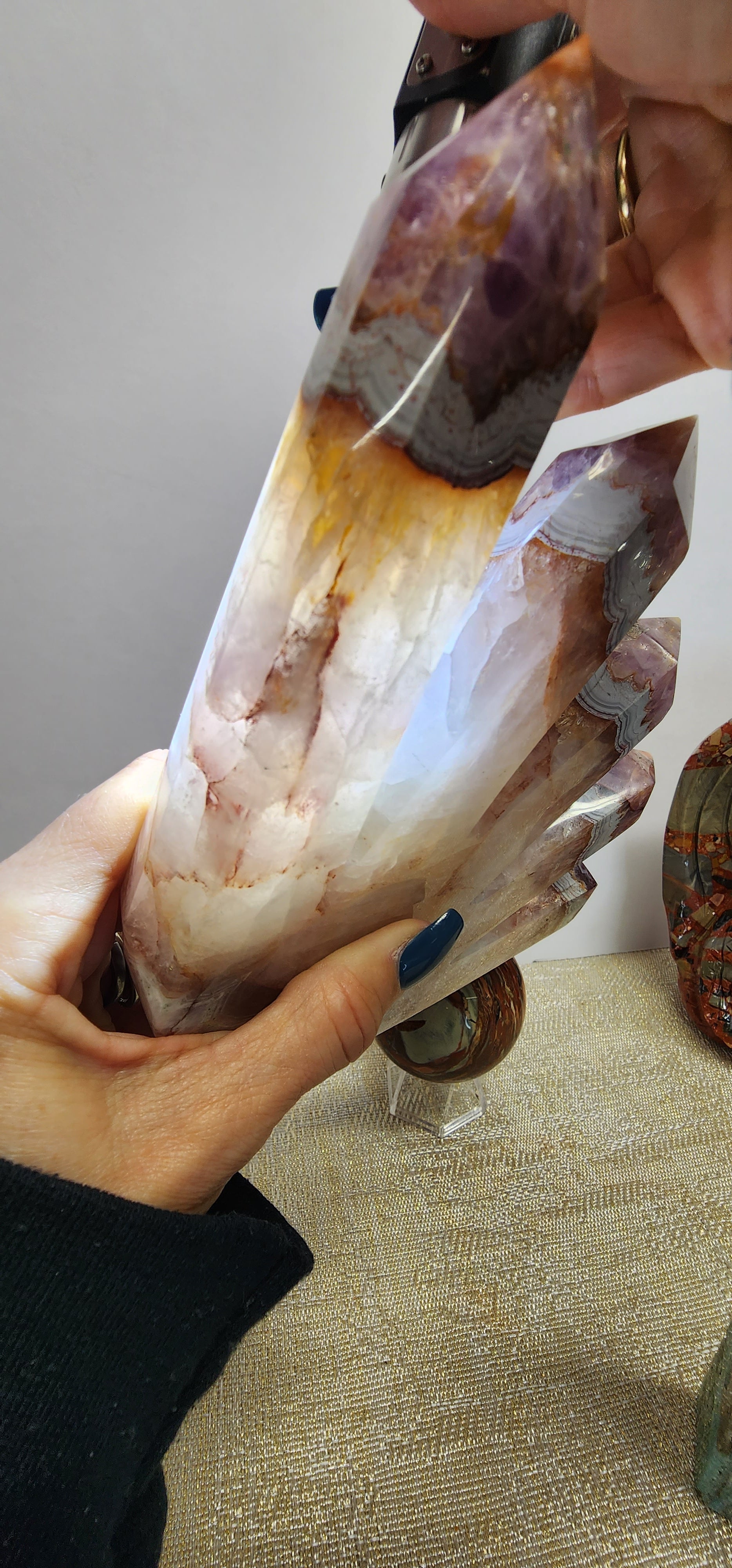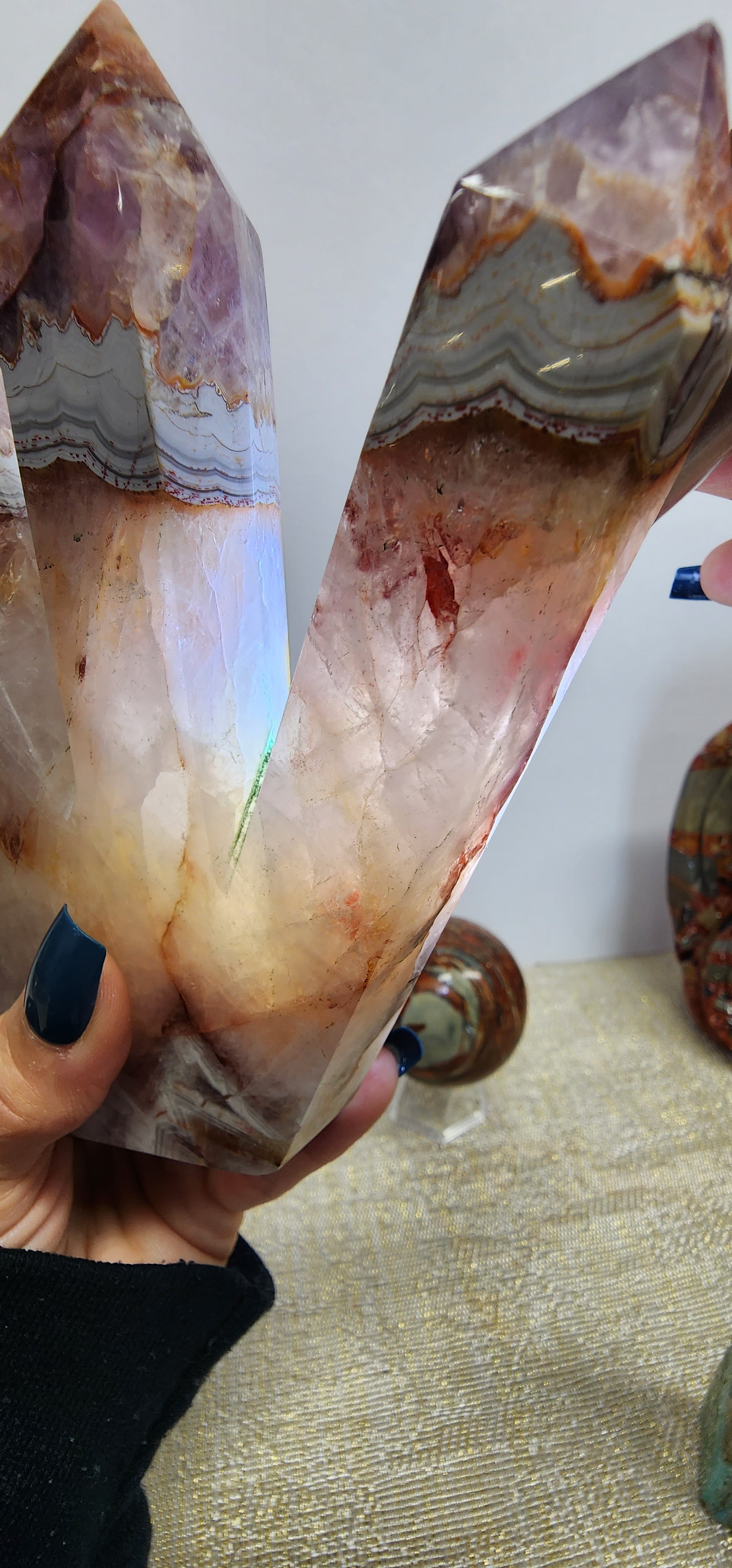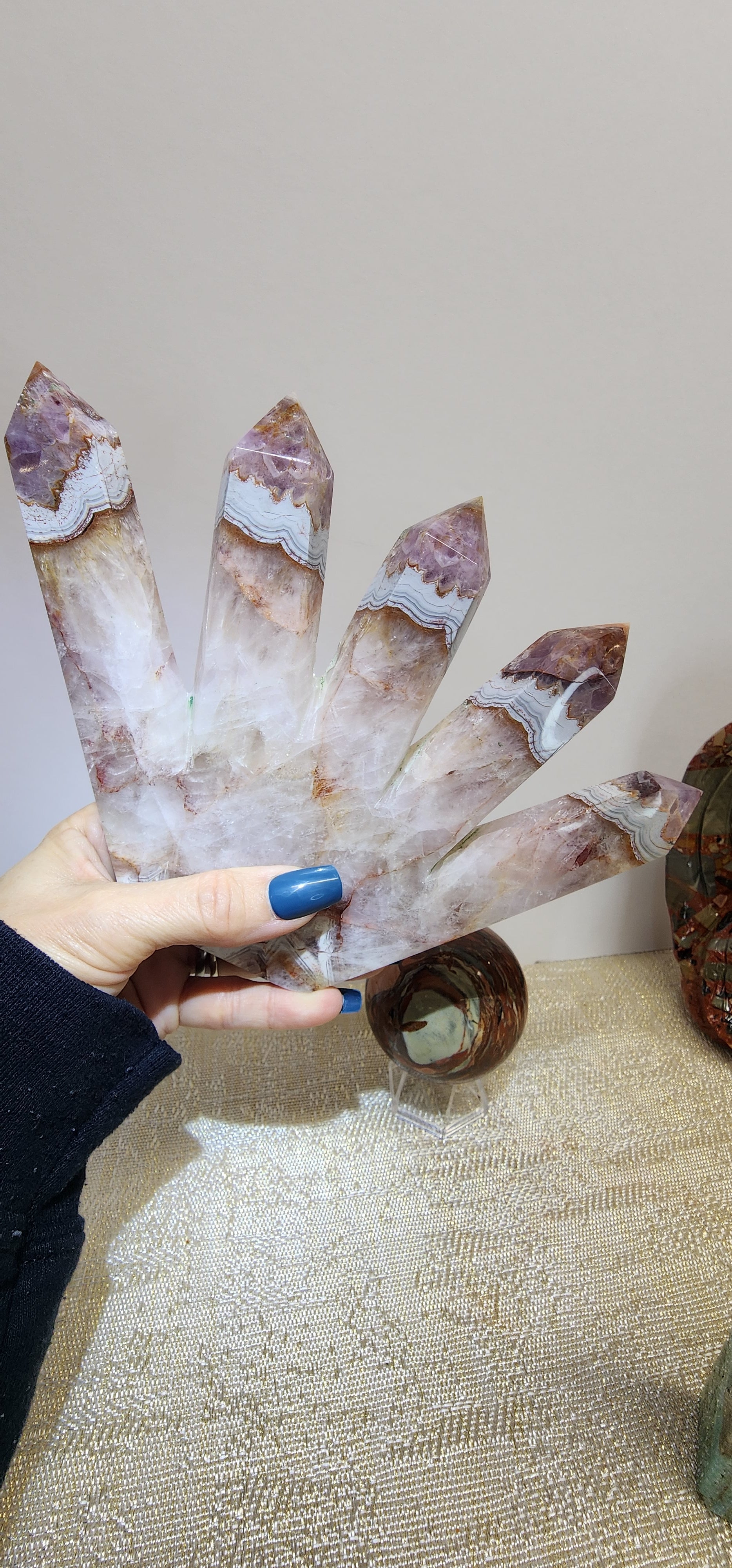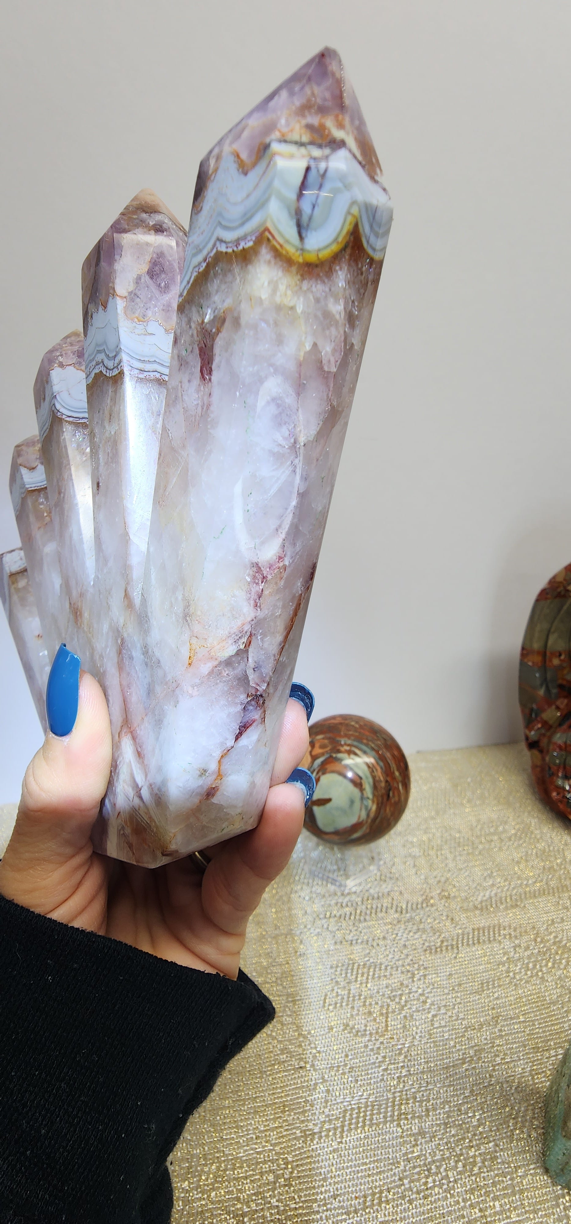 1 Large 5 Tower Amethyst/Agate W/ Fire Quartz Inclusions $182