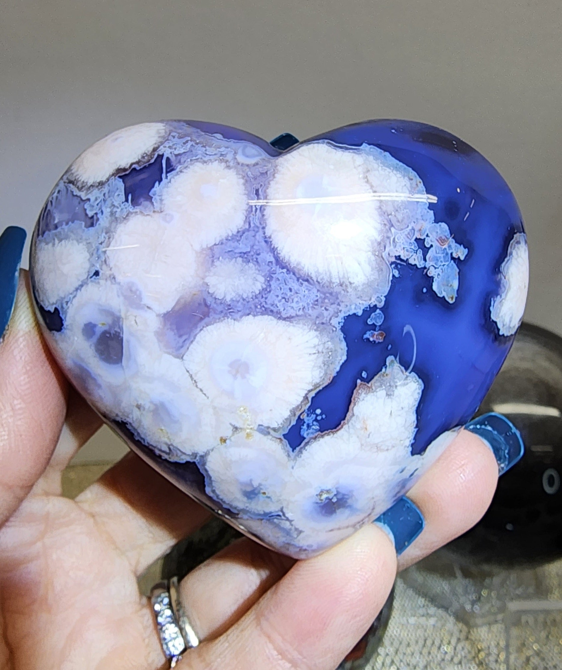 1 Blue Flower Agate Puff Heart $98