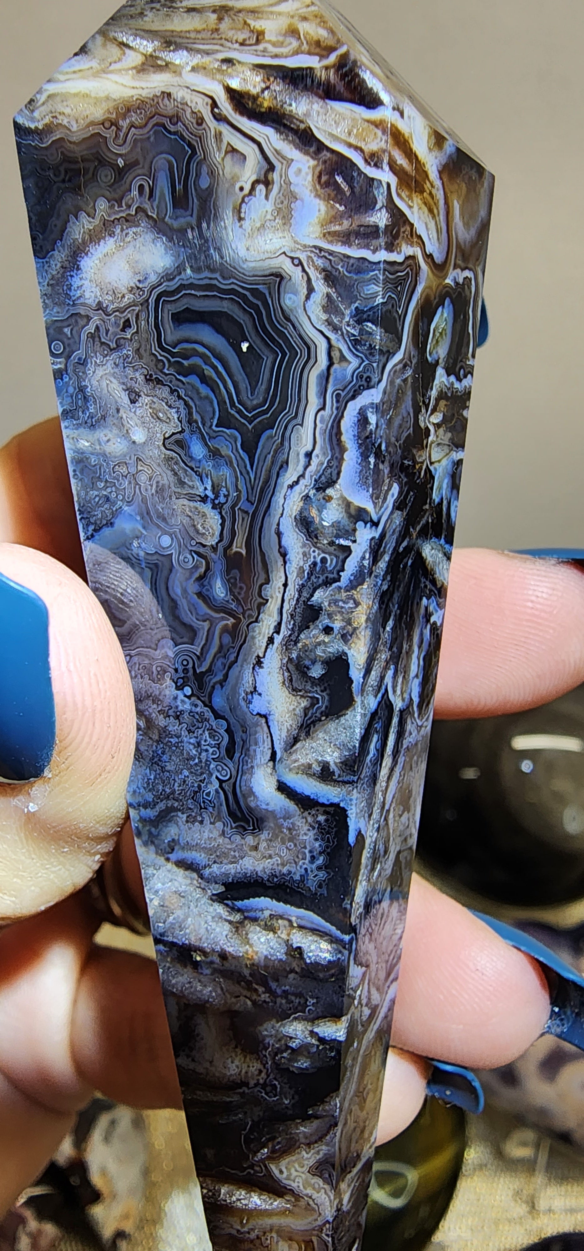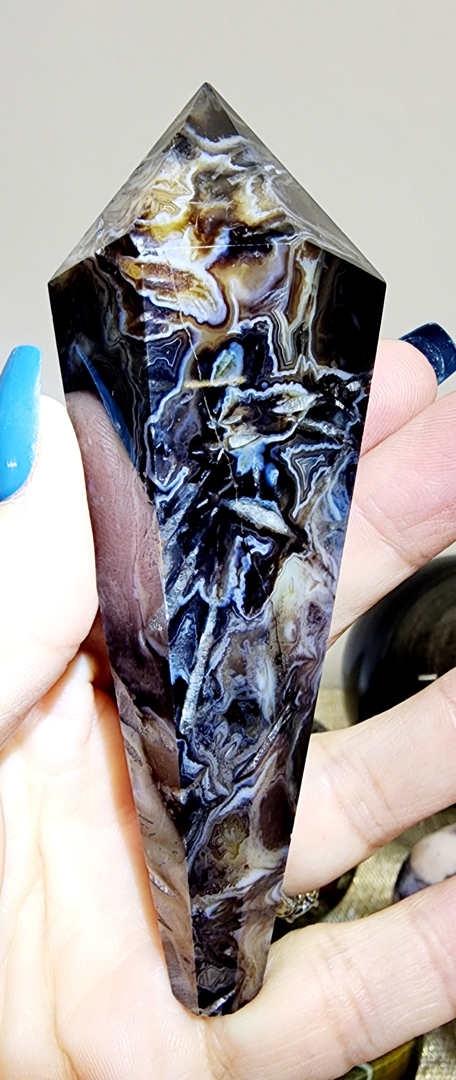 1 Black Banded Agate Tower W/Stand $112