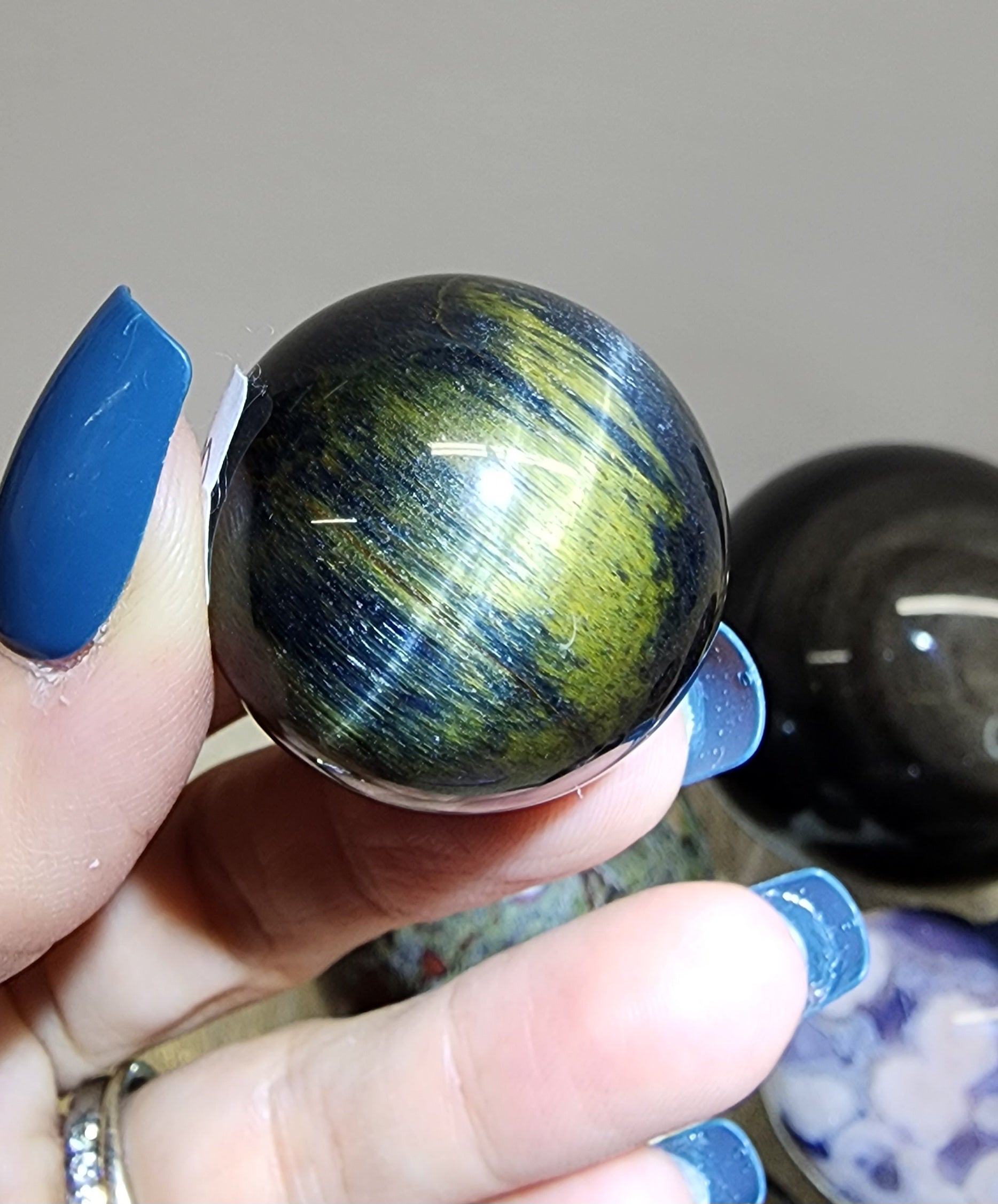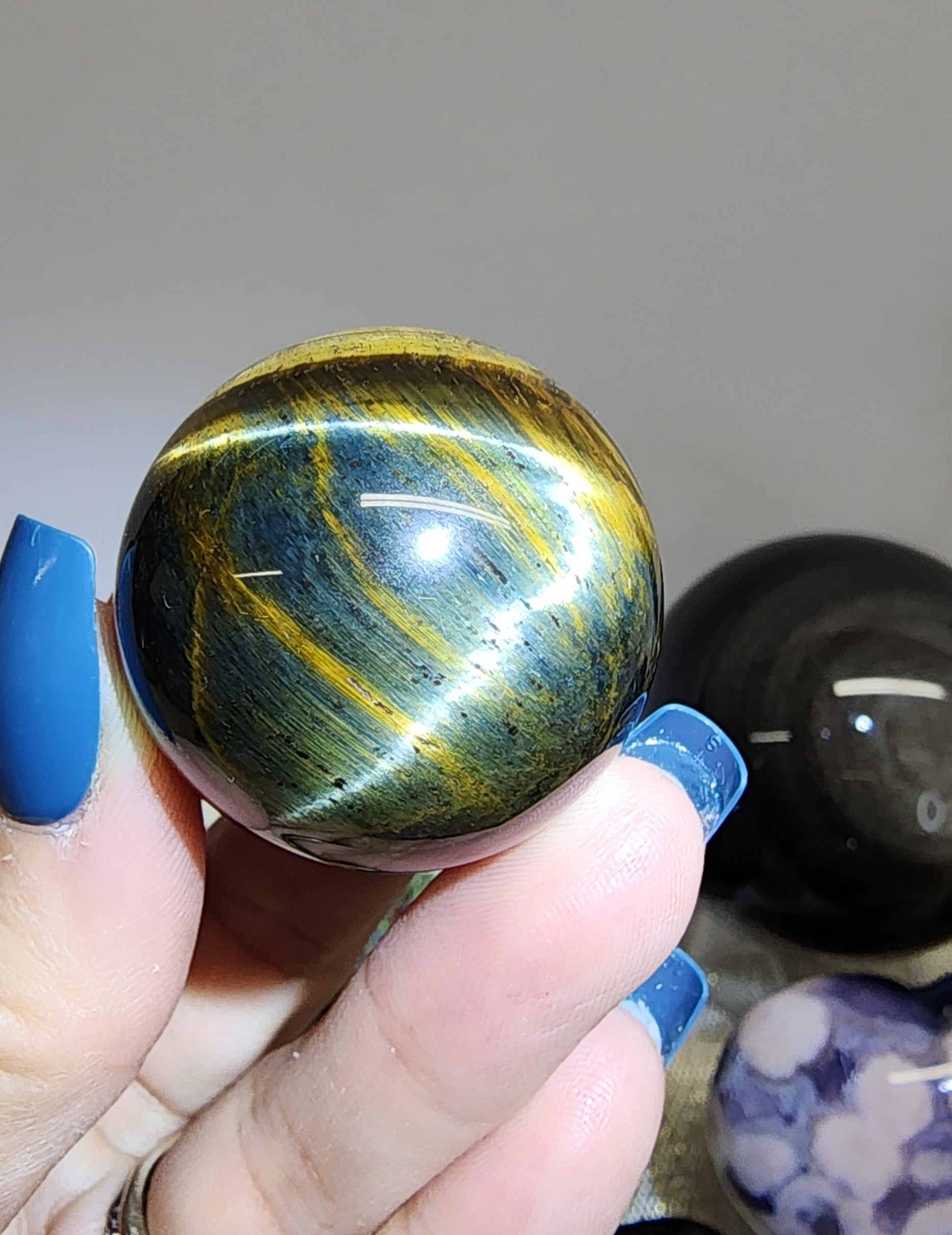 2 Sm Blue Tigers Eye Spheres $38/$23