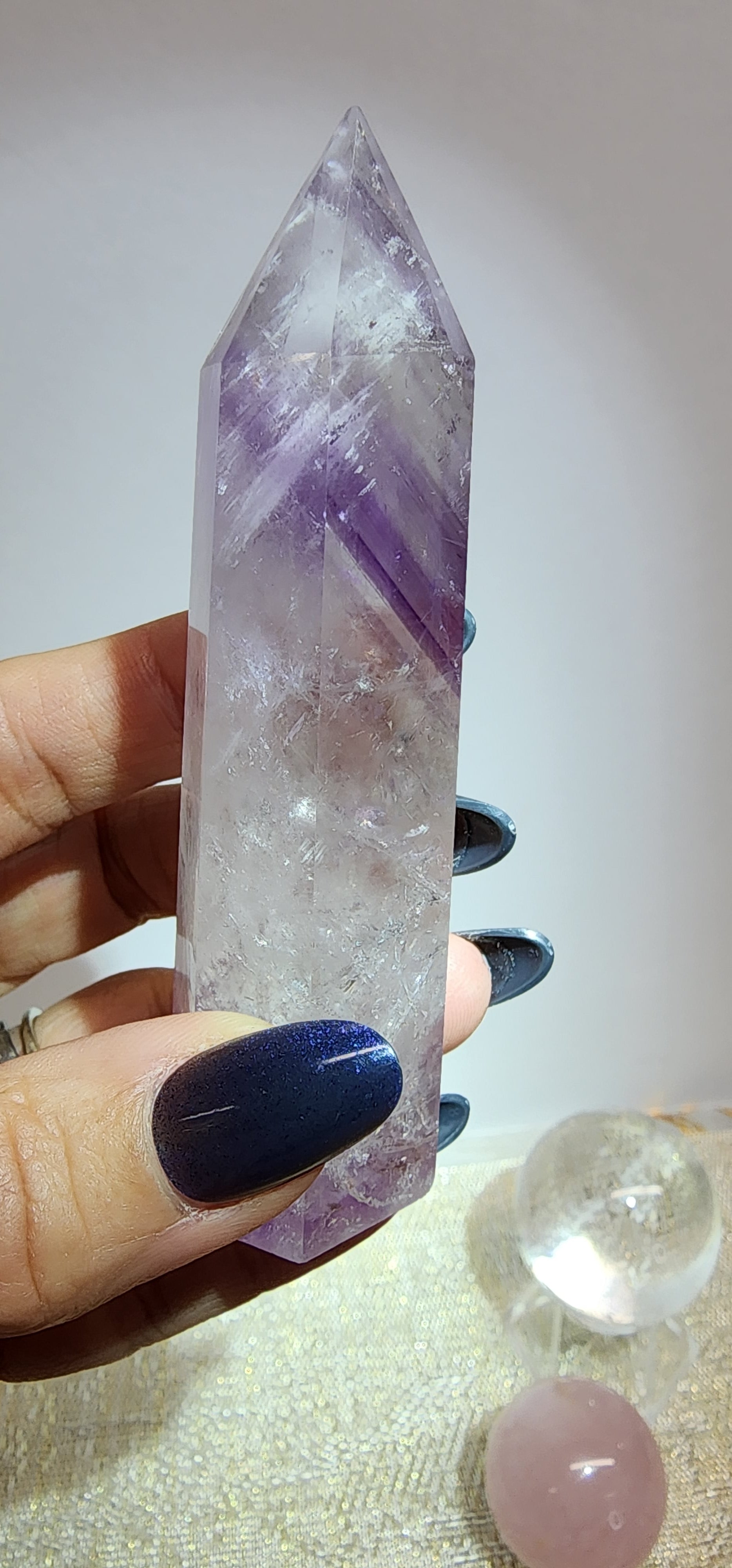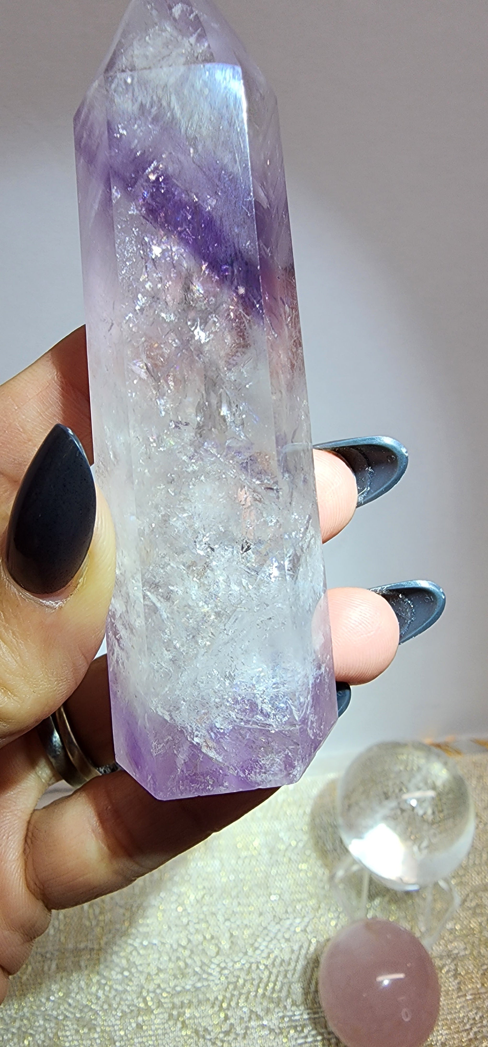 1 Phantom Amethyst Clear Quartz Tower $56