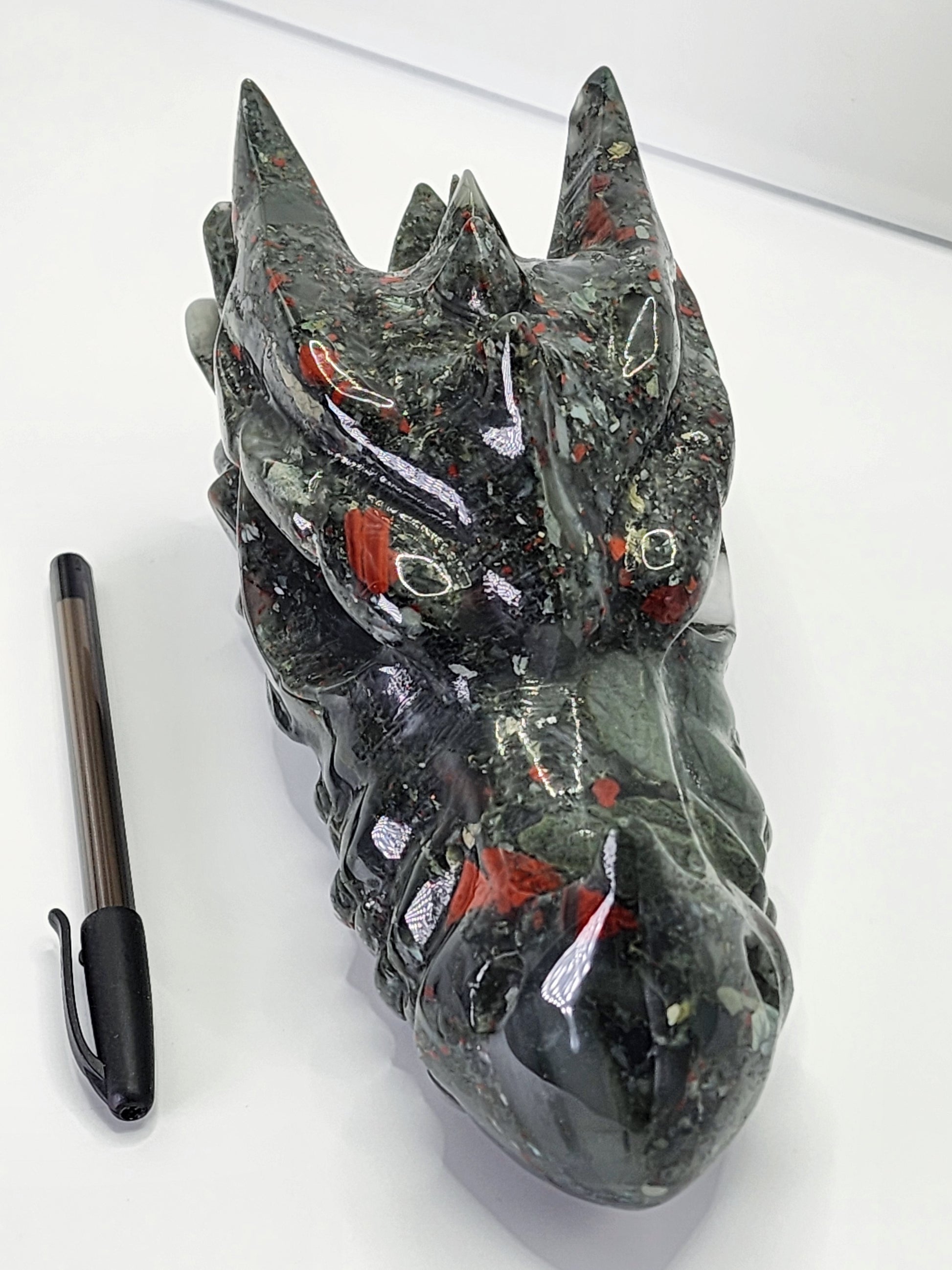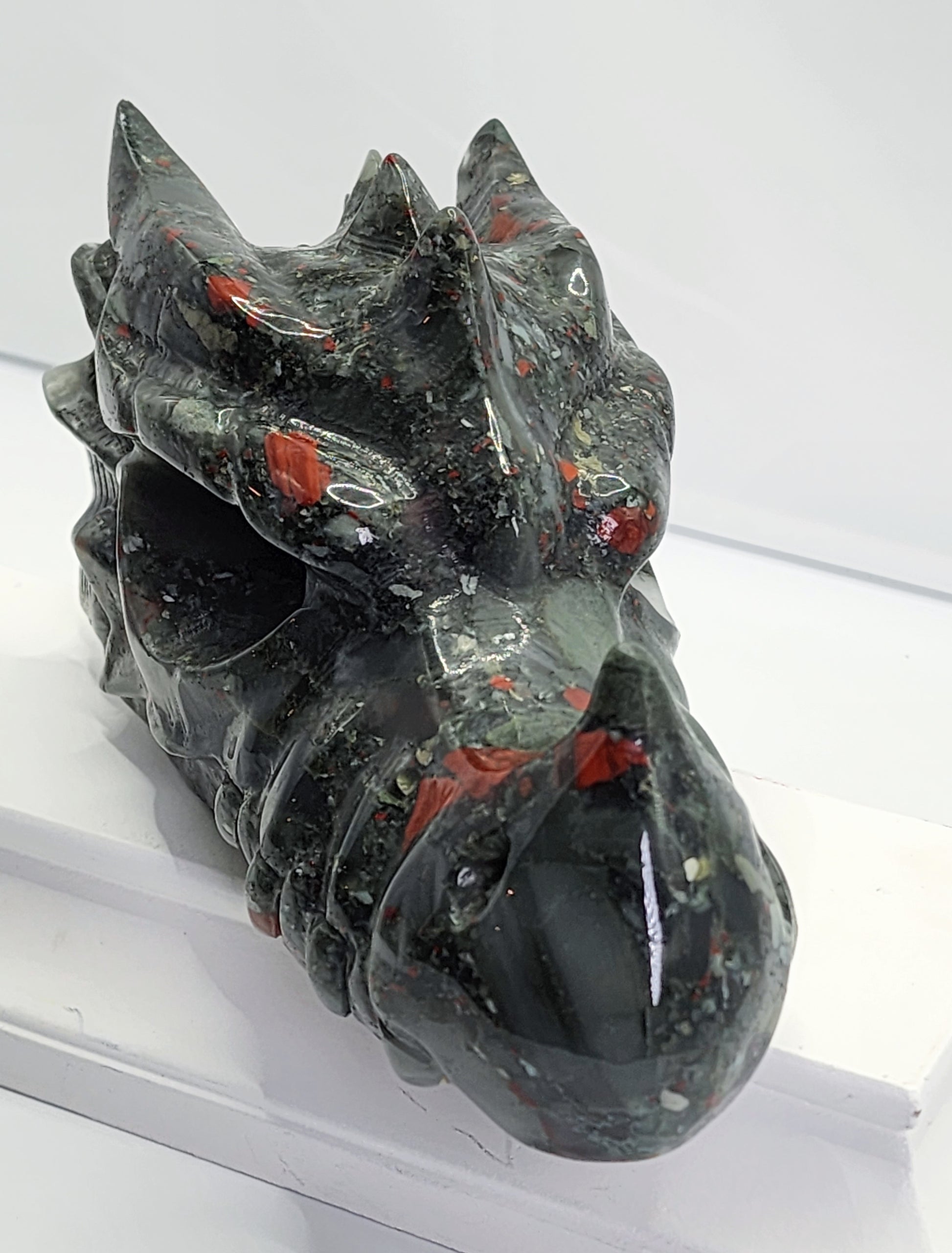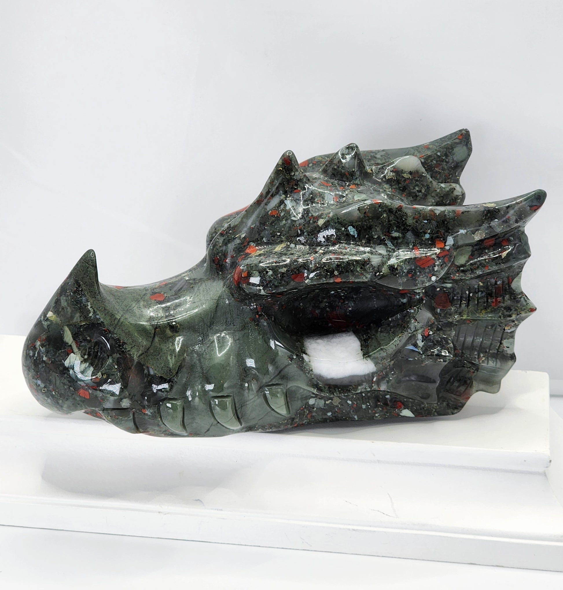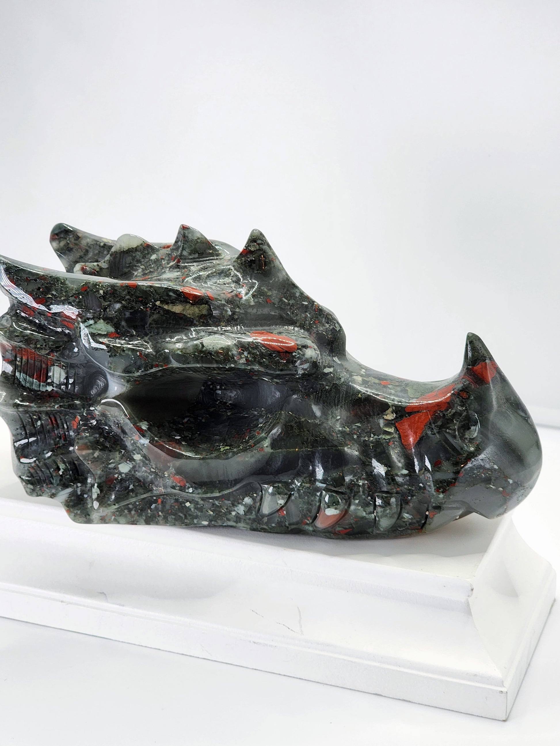 Large African Blood Stone Dragon Head Carving