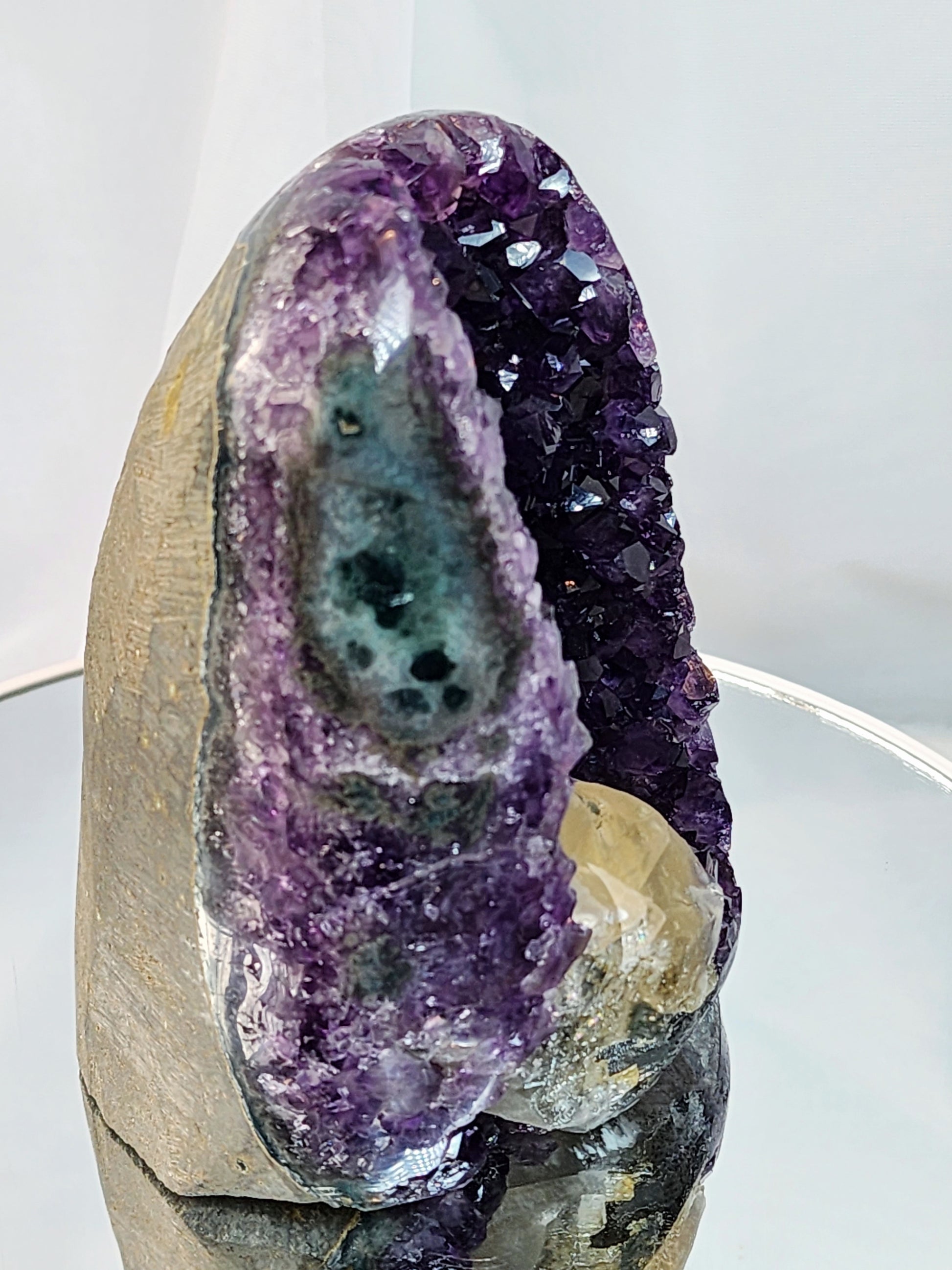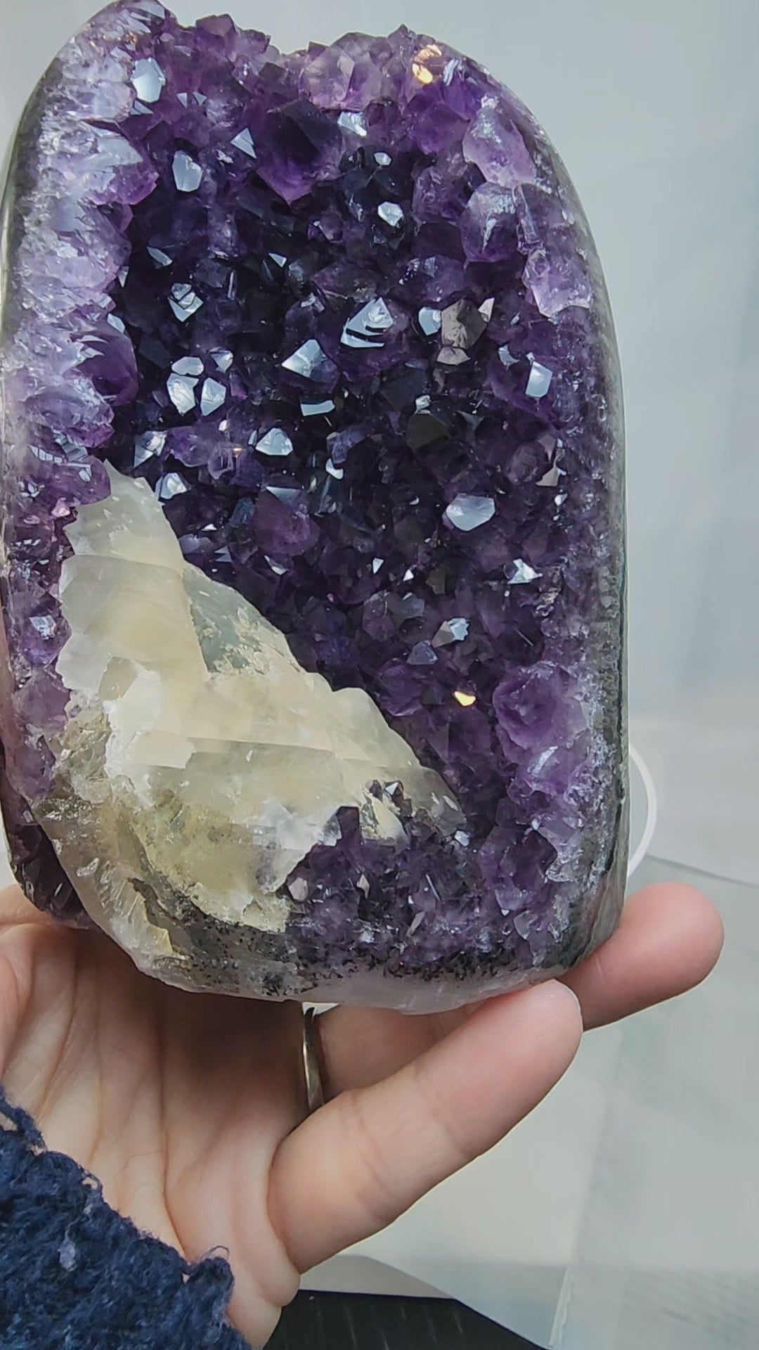 Druzy Amethyst Cathedral/Flat Base and Calcite from Uruguay