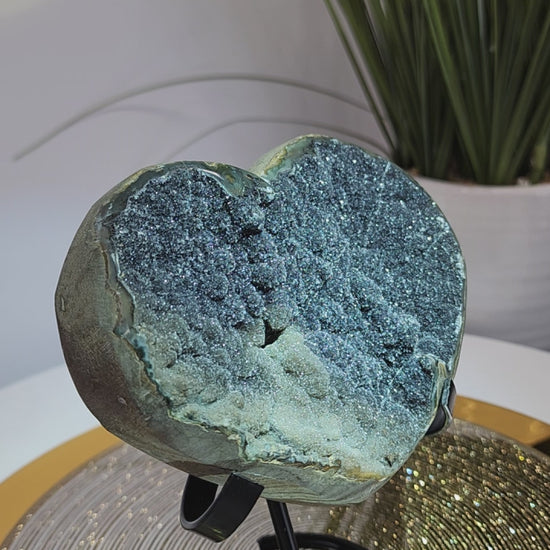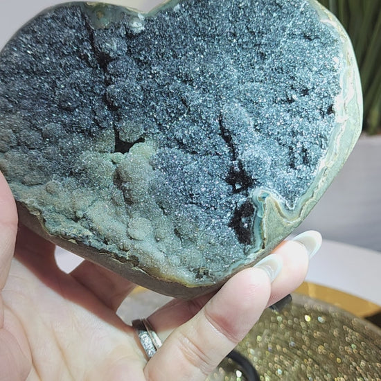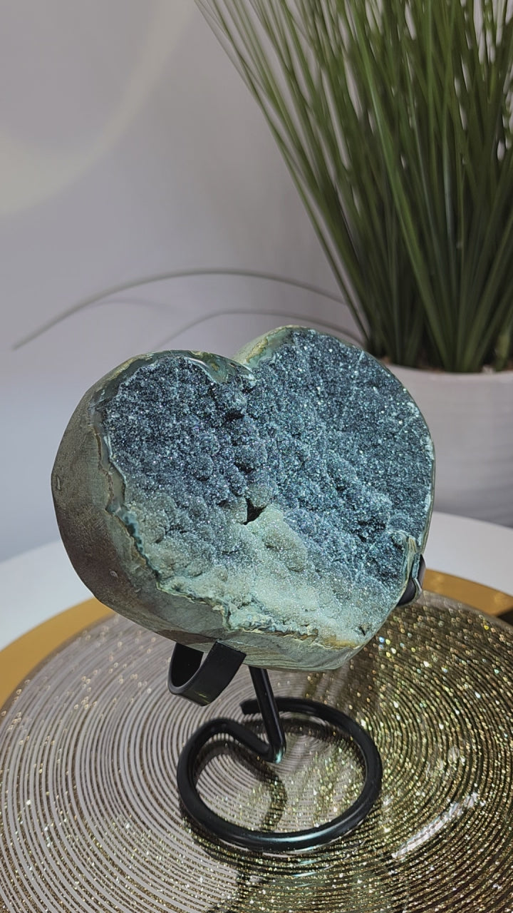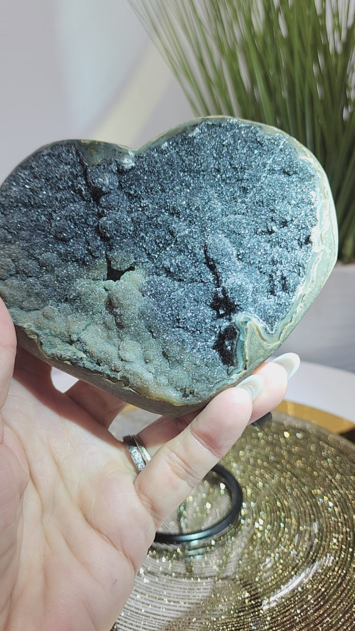 Druzy Black Amethyst Heart from Brazil. Comes with stand
