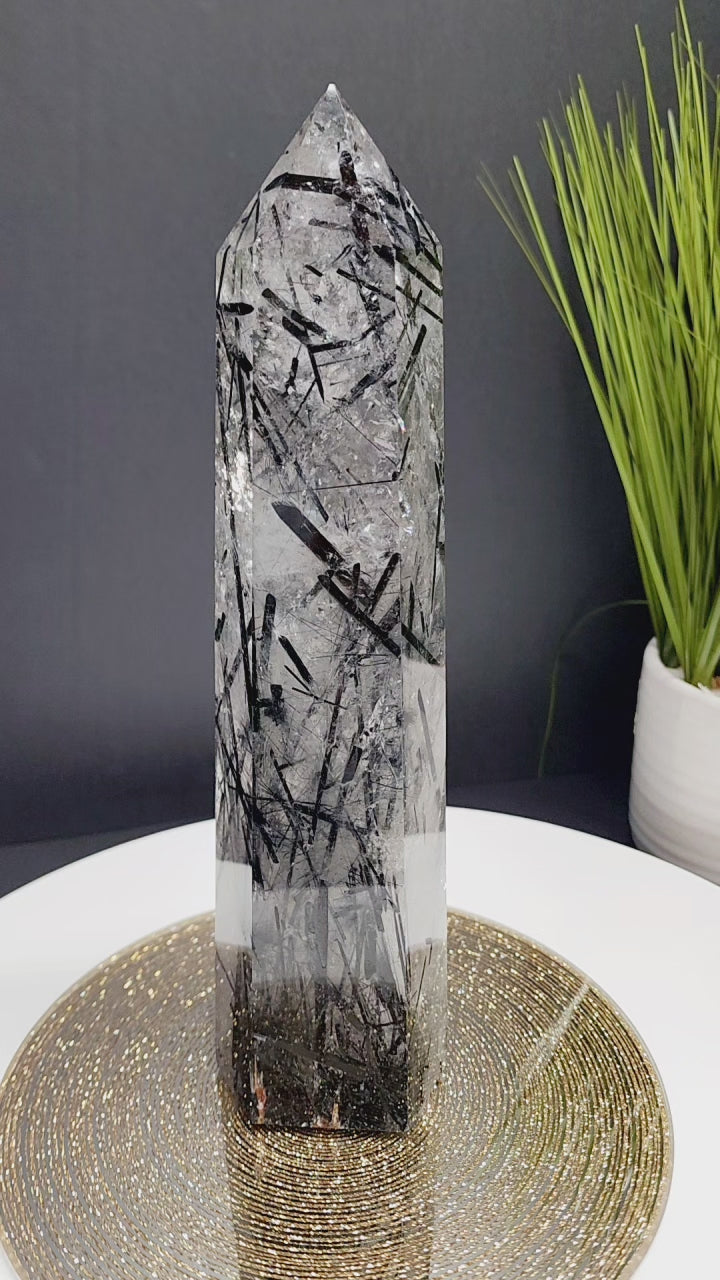Extra Large High Quality Tourmaline and Clear Quartz Tower. Collectors item/Statement Piece with Free Shipping