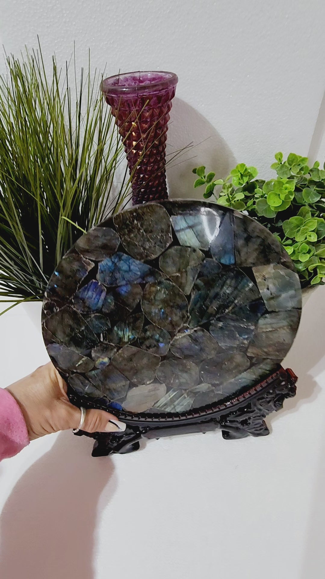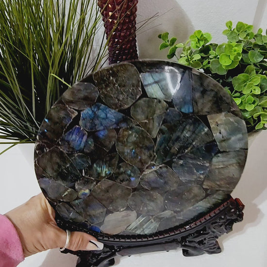 Large Round Labradorite Plate/Slab With Stand 1.5lbs qualifies for free shipping