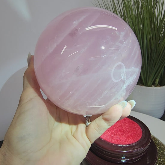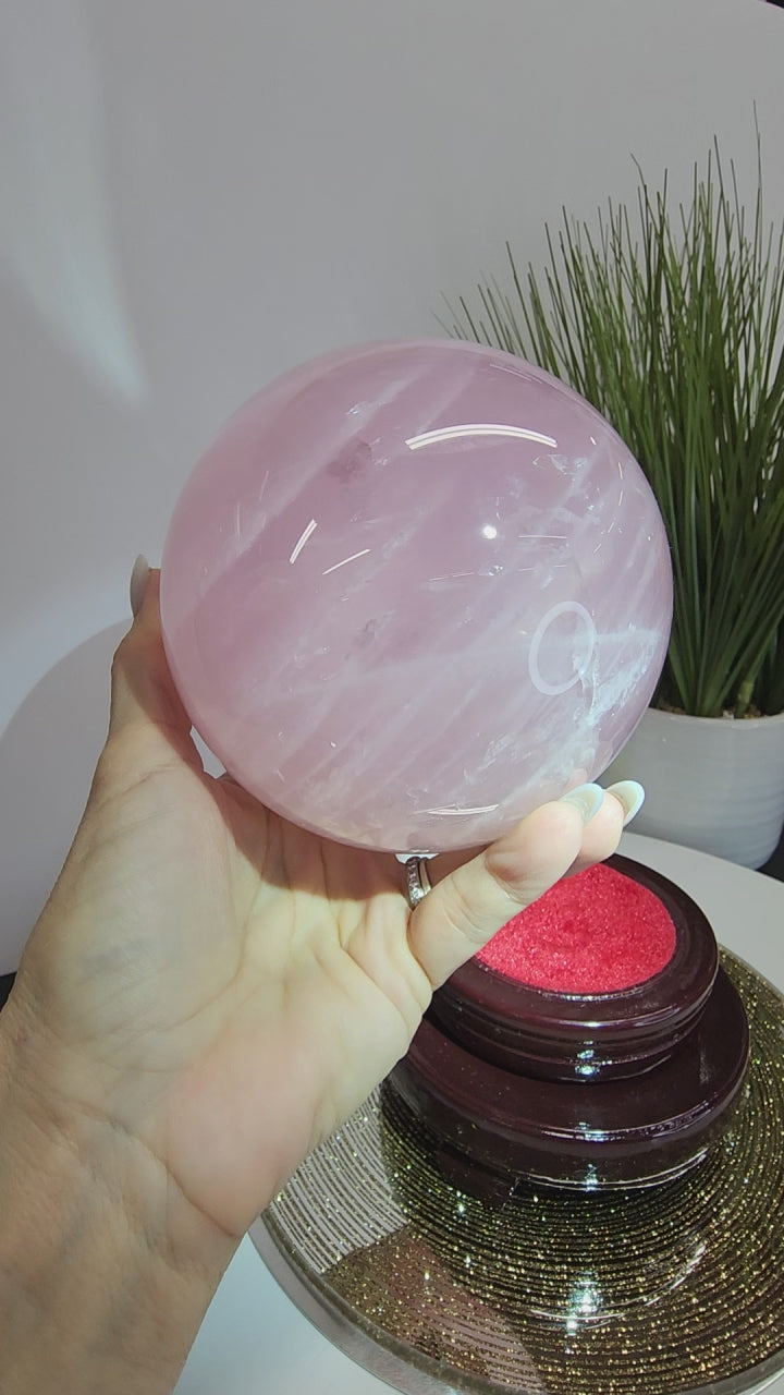 Large Star Flash Rose Quartz Sphere