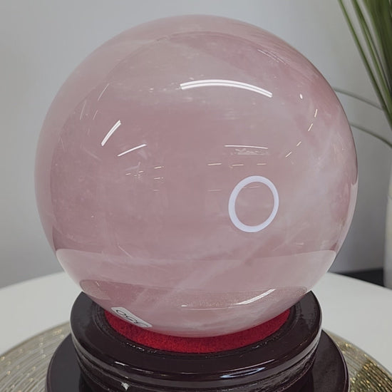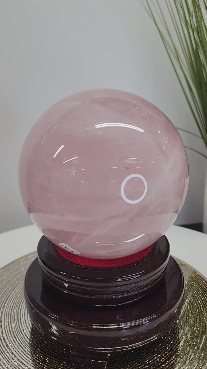 Large Star Flash Rose Quartz Sphere with transparency and strong flash.