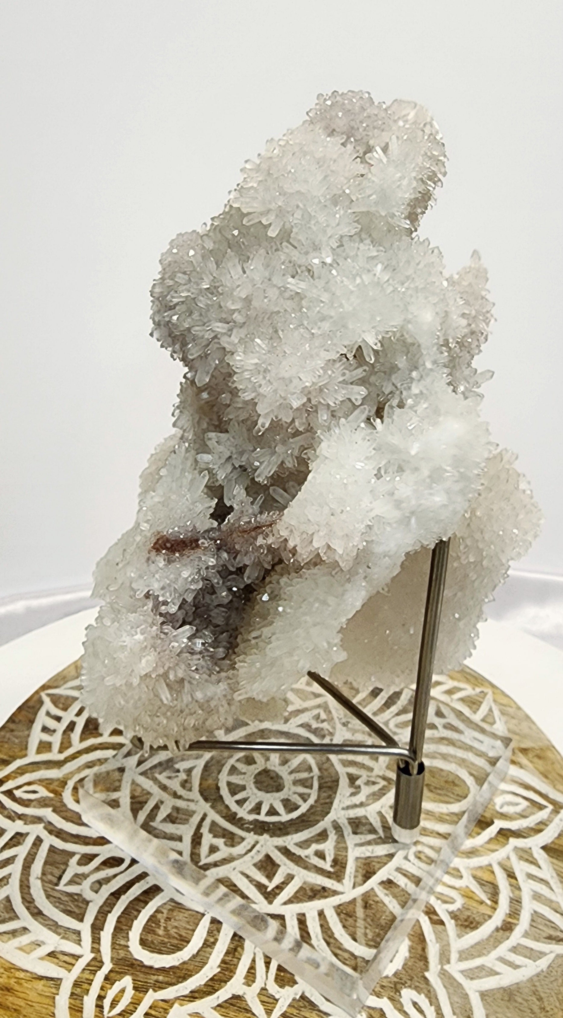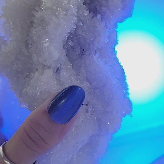 Beautiful White Needle Quartz Cluster Specimen w/ Calcite inclusions UV Reactive