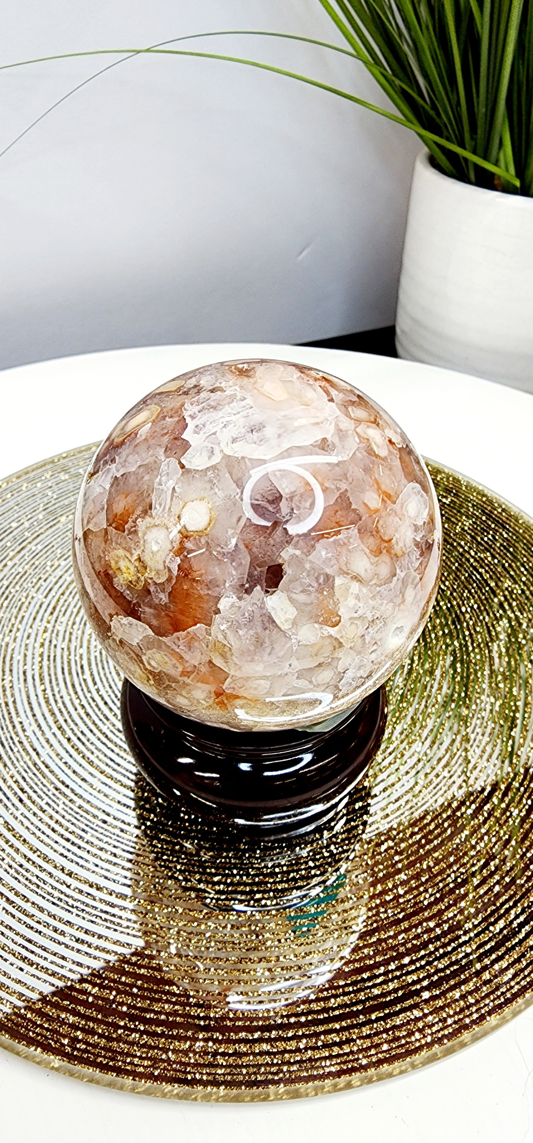 Pink Amethyst and Flower Agate Sphere with red iron deposit