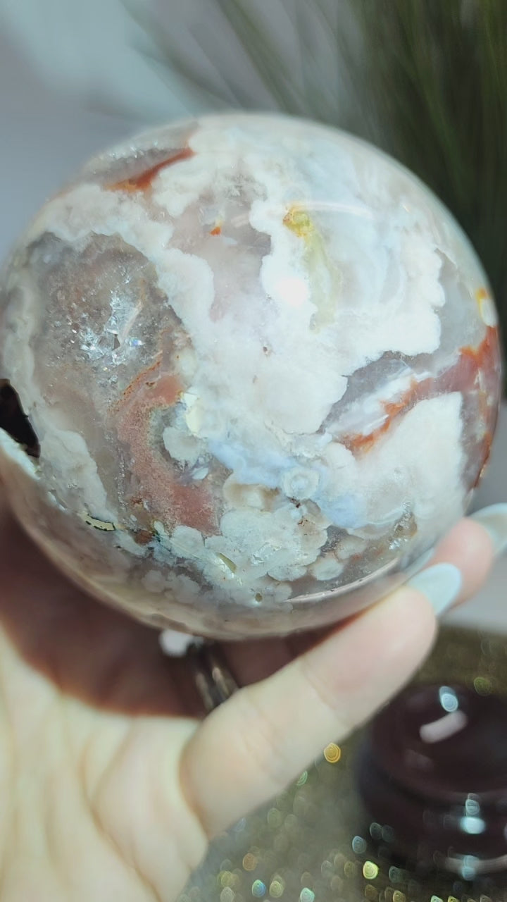 Pink Amethyst and Flower Agate Sphere