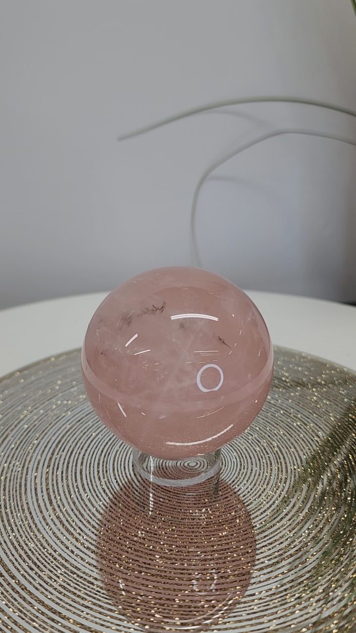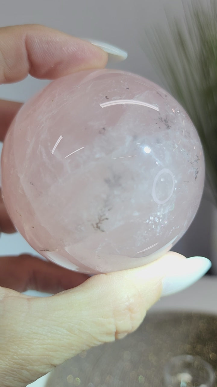 Rose Quartz Sphere with Dendrite