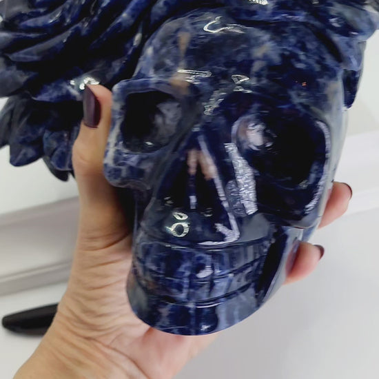 Large Sodalite Skull with Roses 5.5lbs qualifies for free shipping