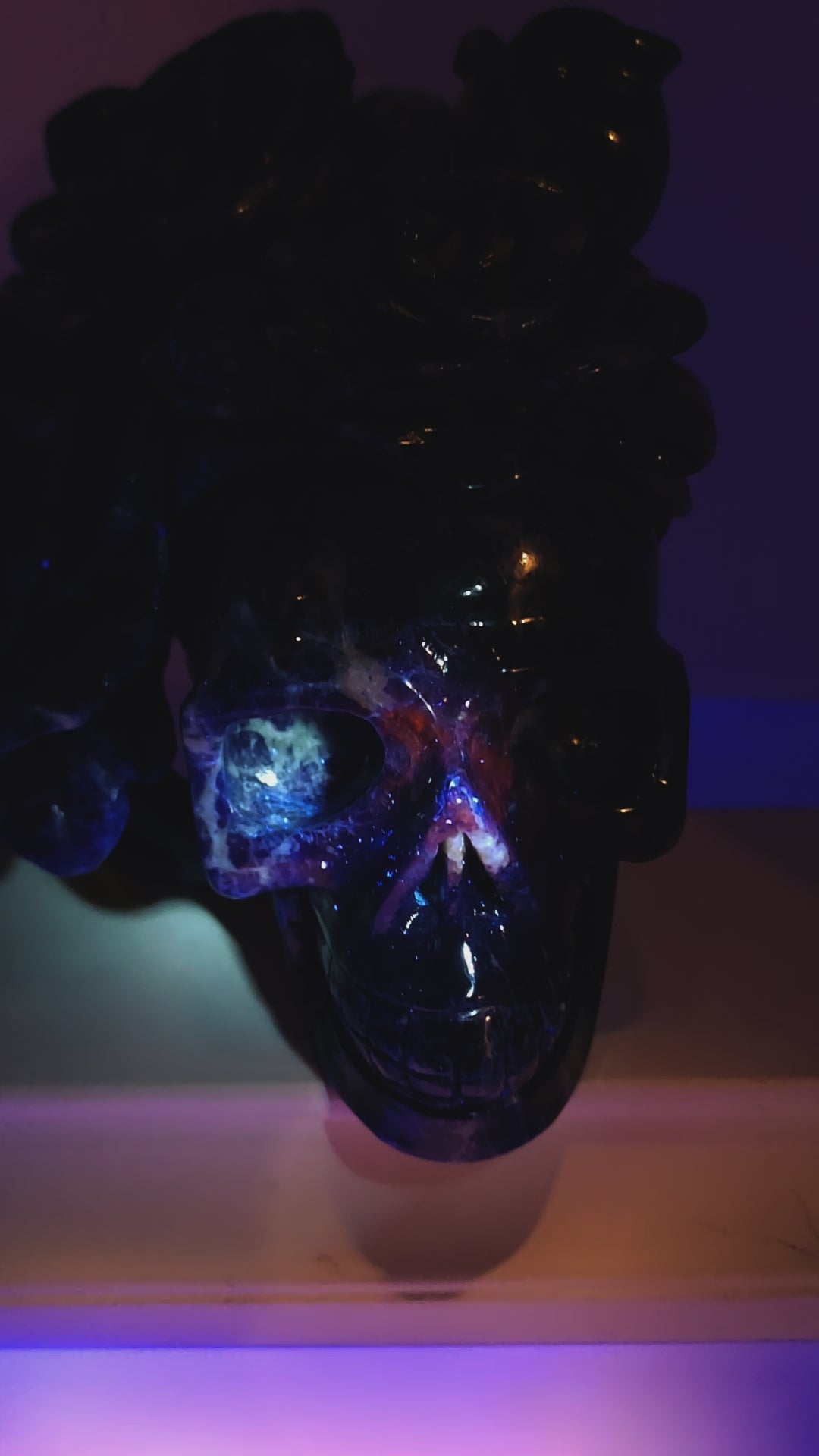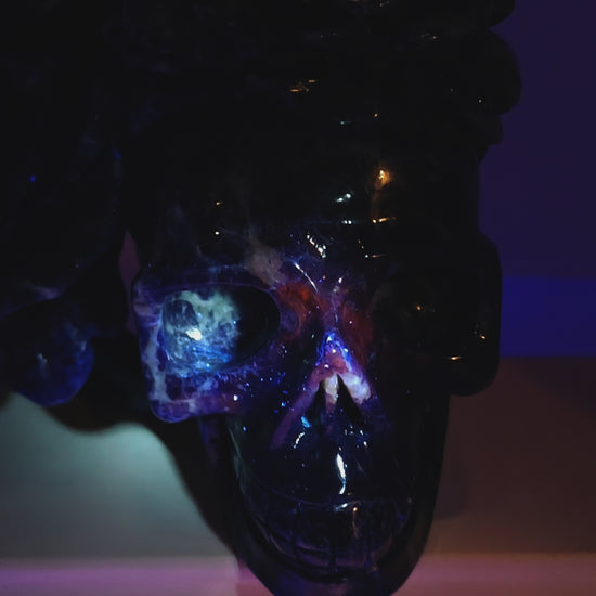 Large Stunning Sodalite Skull W/Rose's Carving UV Reactive